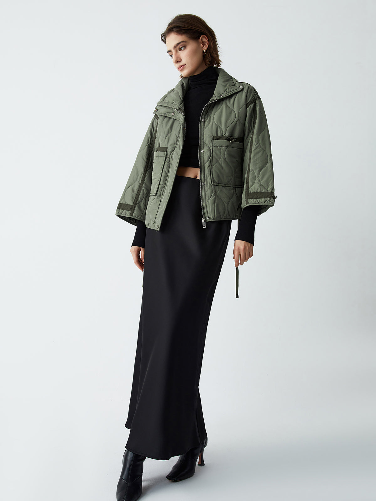 Open Collar Quilted Coat