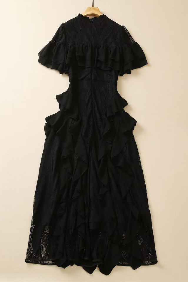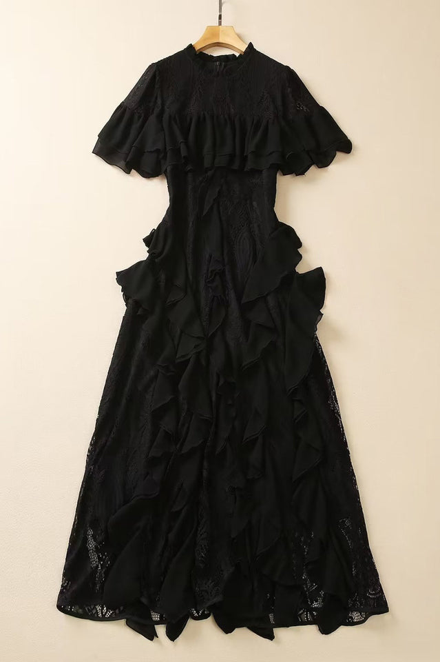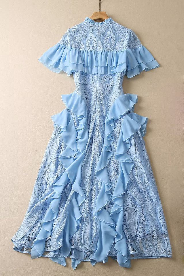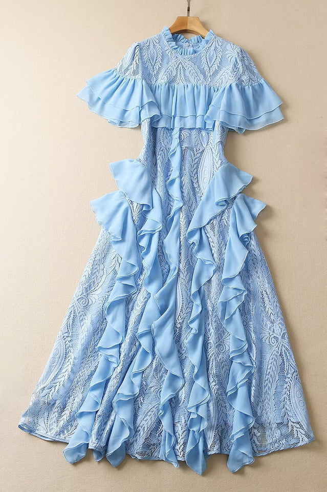 High stretch | Solid color | fuchsia | lace | frill | midi dress | midi sleeve