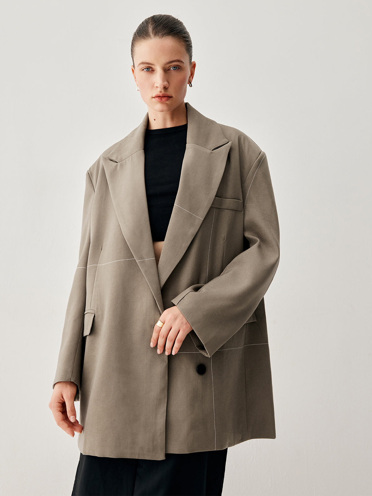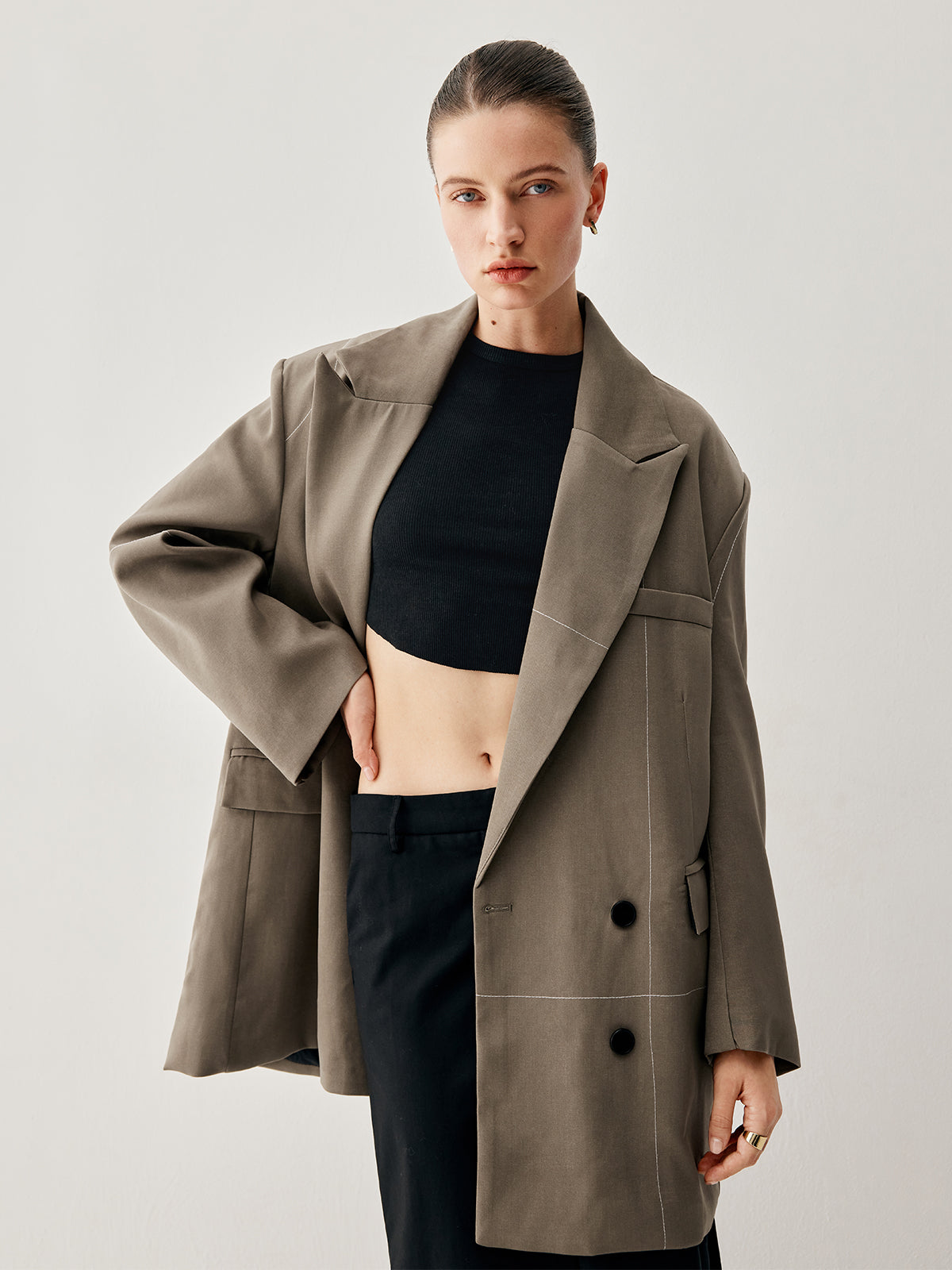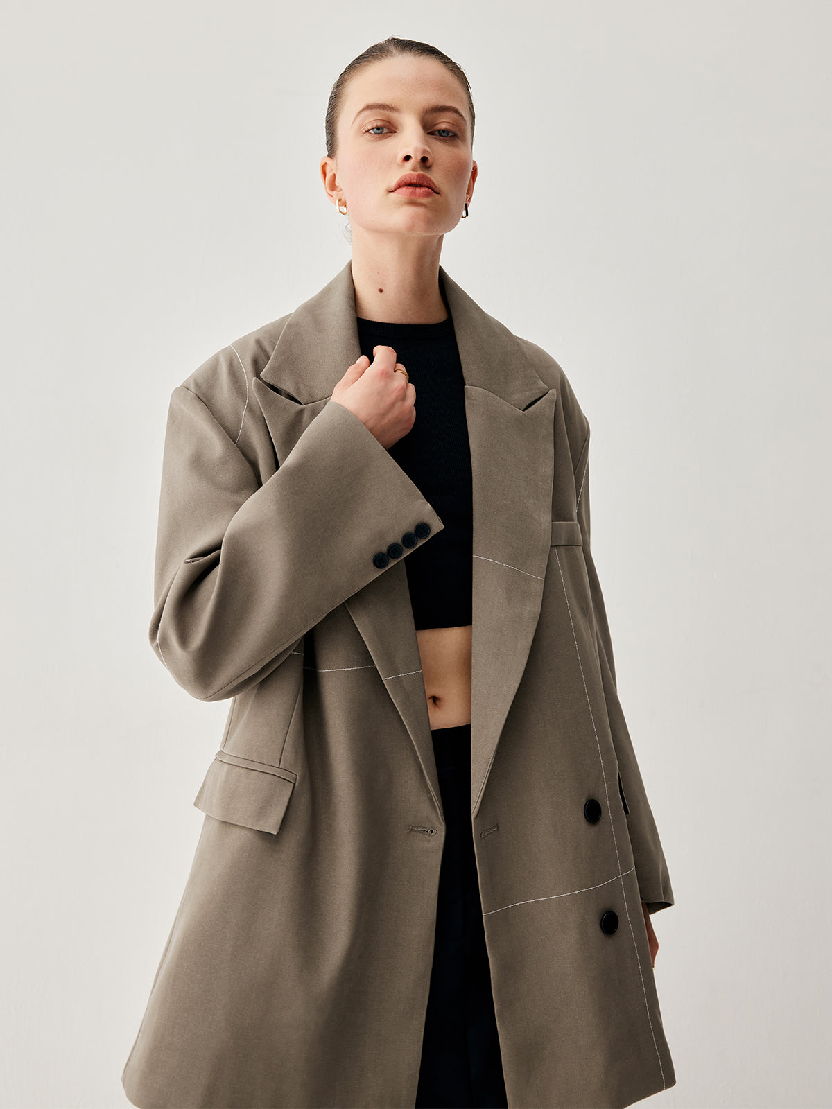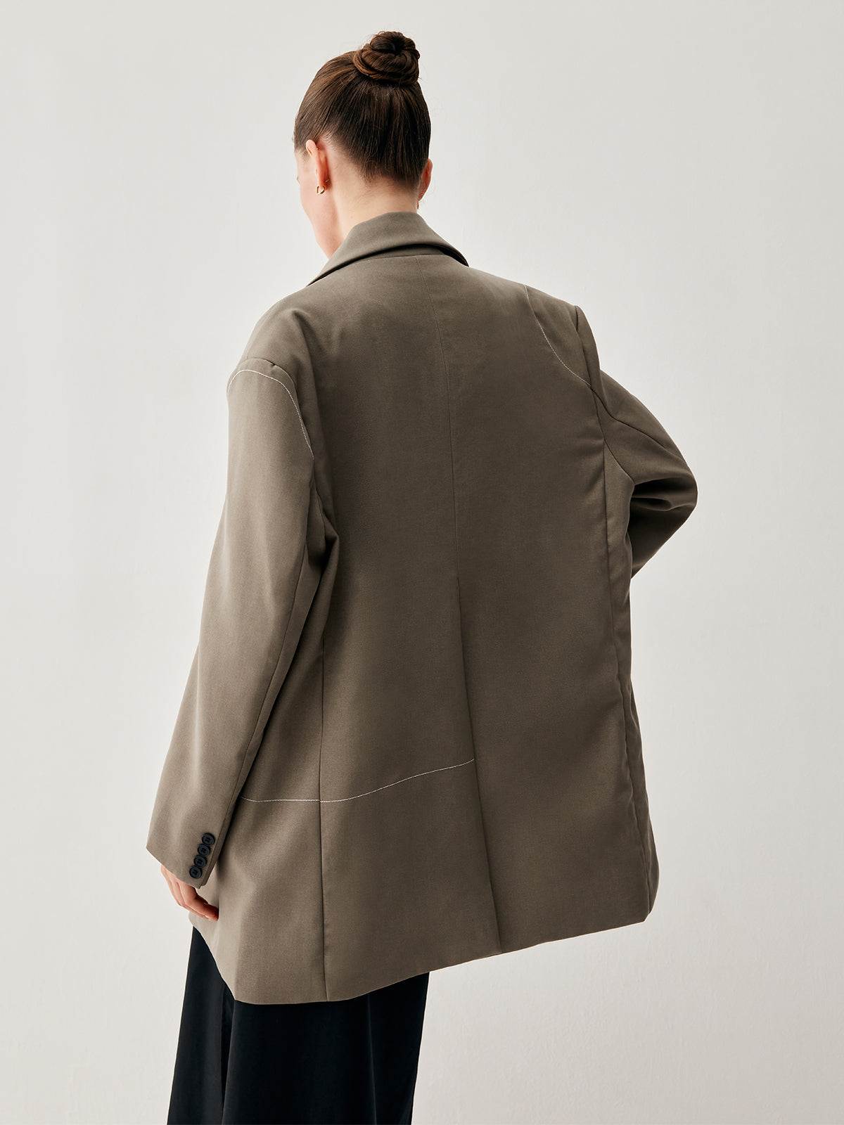Oversized Asymmetric Checkered Button Detail Blazer