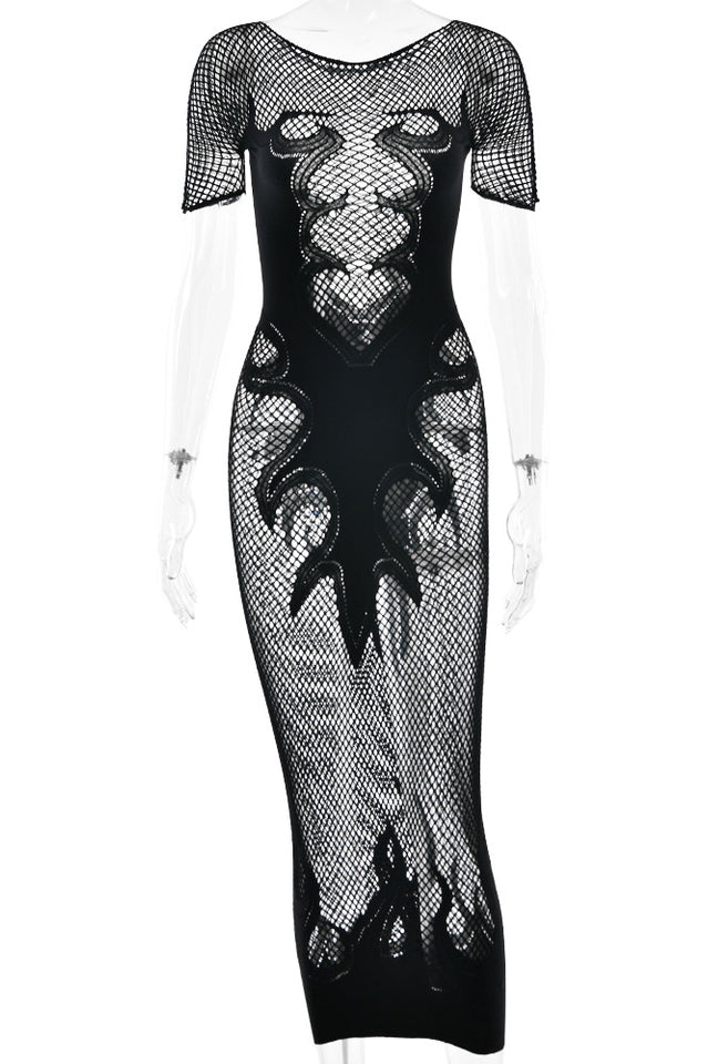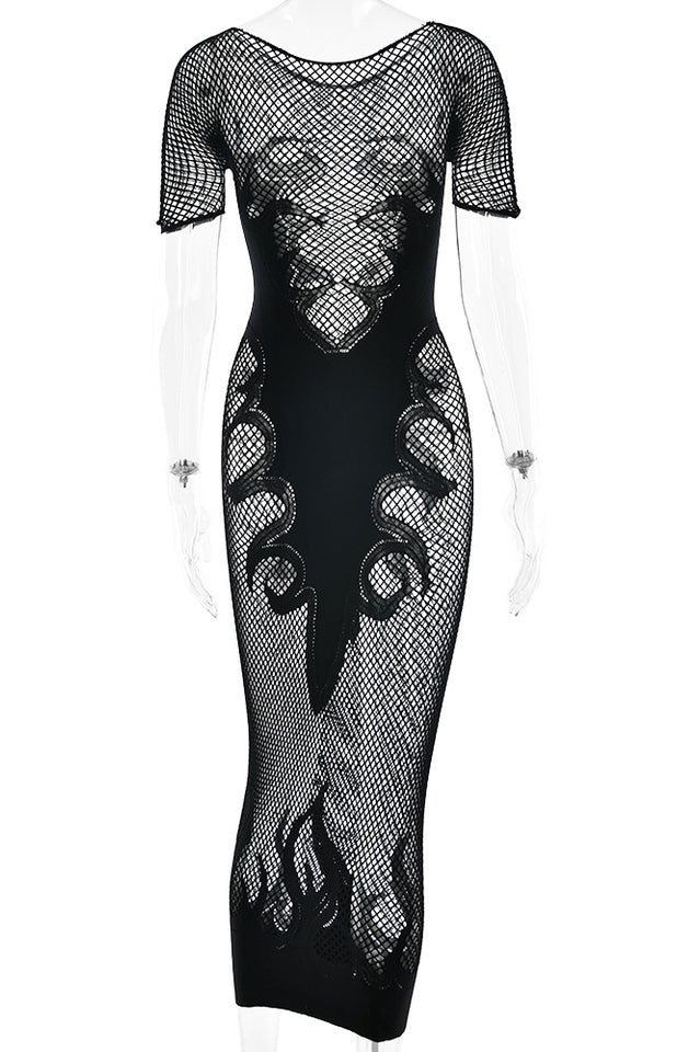 Meticulously crafted with flame details and fishnet elements that contour and sculpt the body to achieve that perfect silhouette look. Elevate your wardrobe with this must-have piece.