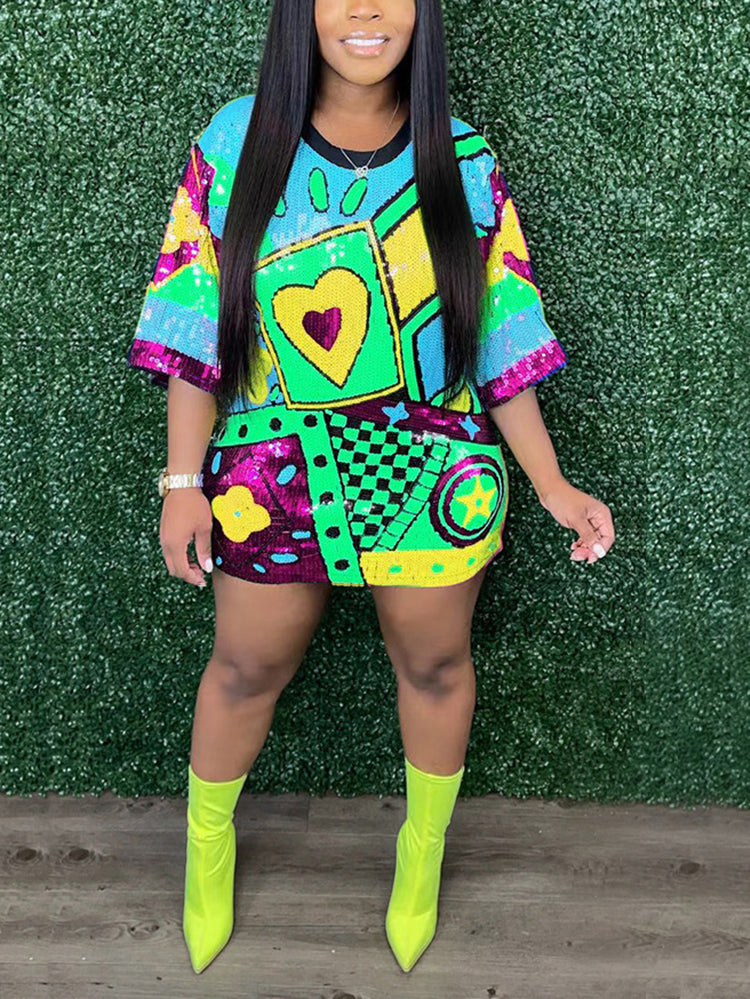 Print Sequin Dress