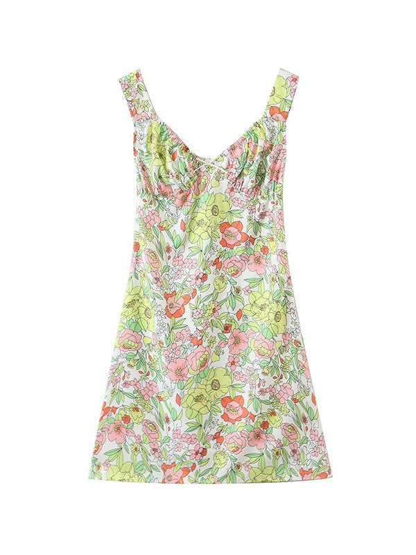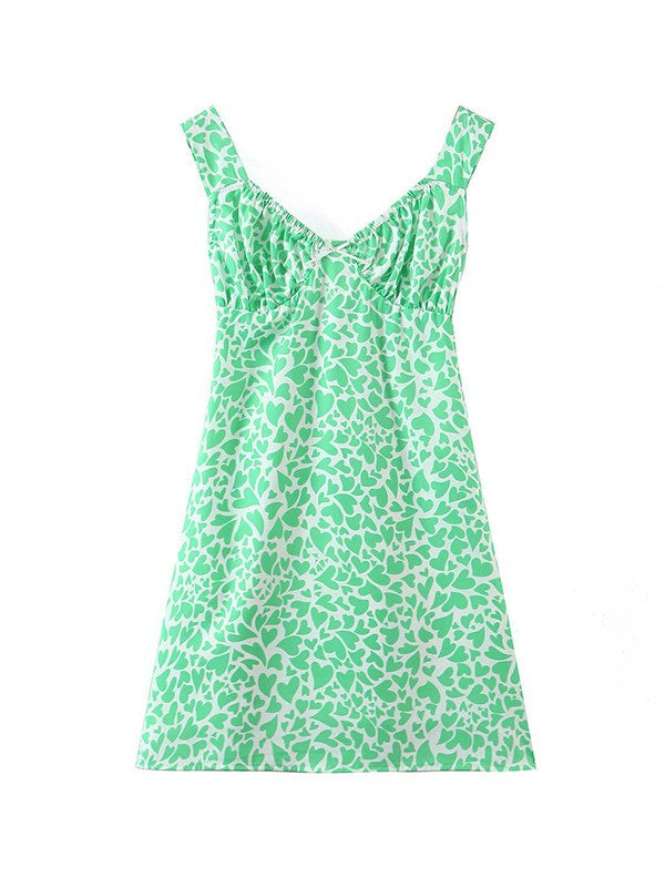 Description: Inspired by cute heart & floral pattern print through the body. this retro y2k mini dress are perfect for go-to vibes. They have tank shoulder straps. features an open back design. and with ruched details on the body.