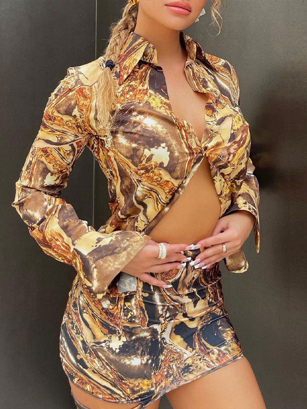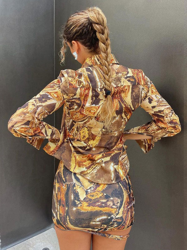 Long Sleeve Crop Blouse & Mini Skirt Set