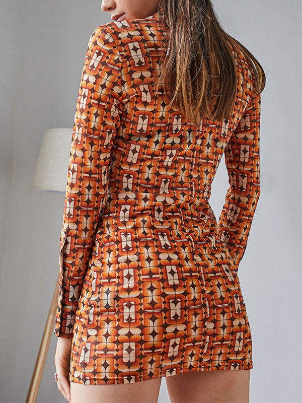 Printed Long Sleeve Shirt Mini Dress
