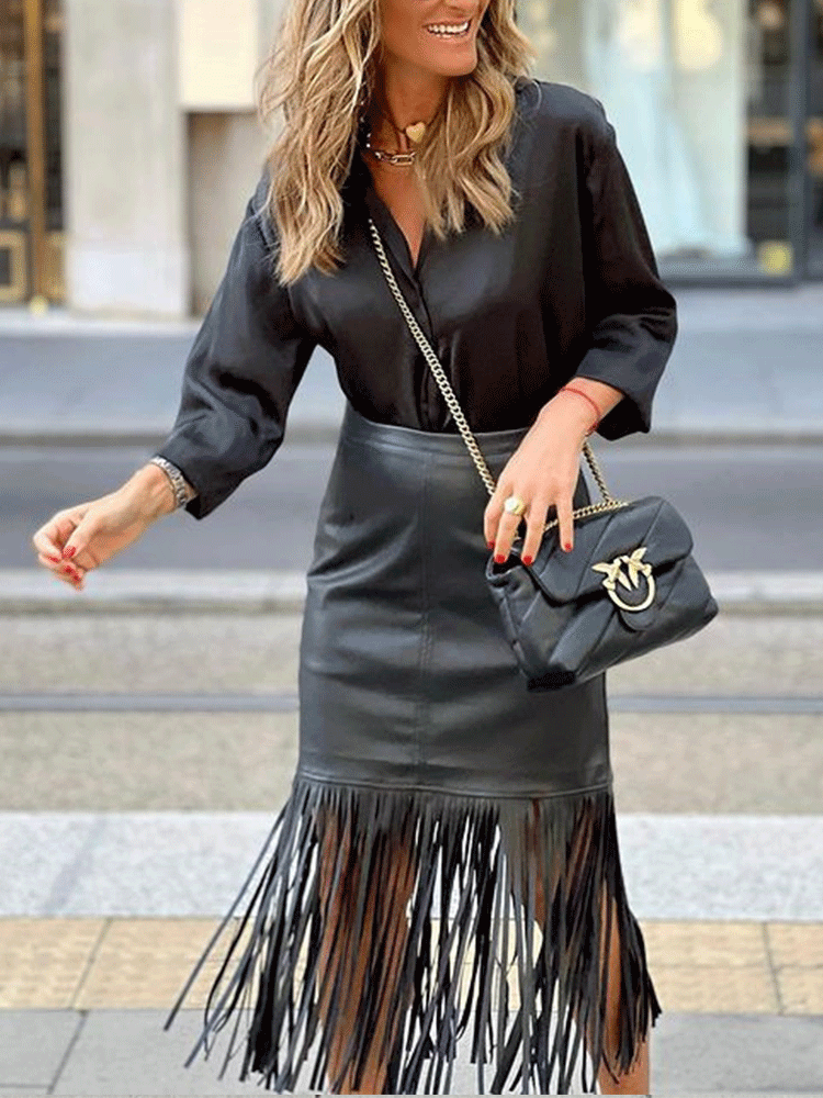 PU Tassels Patchwork Skirt