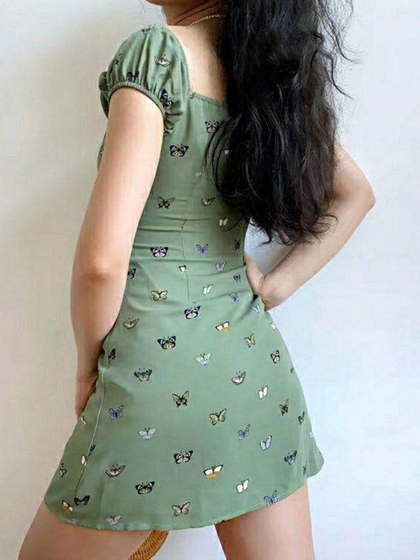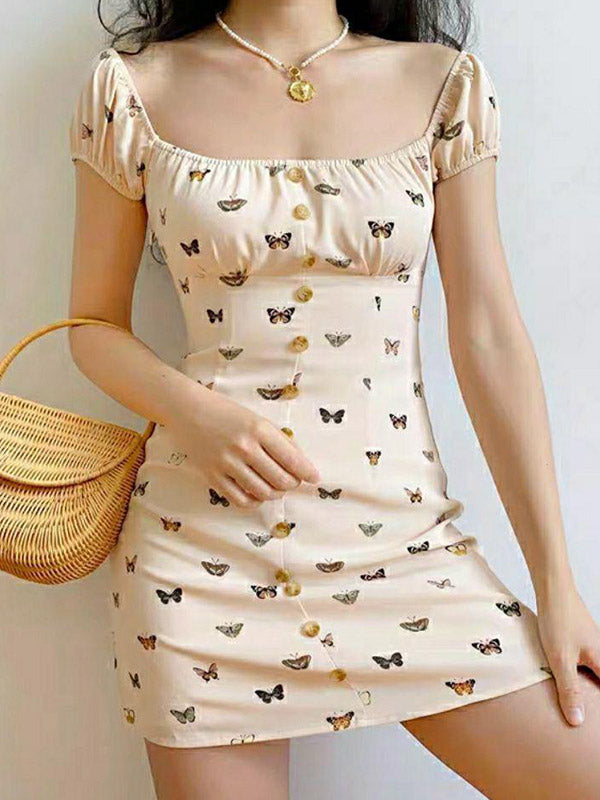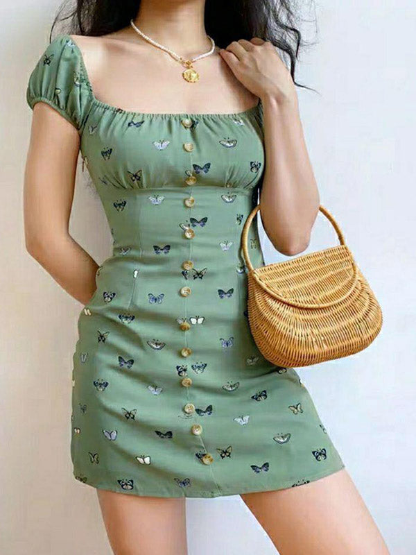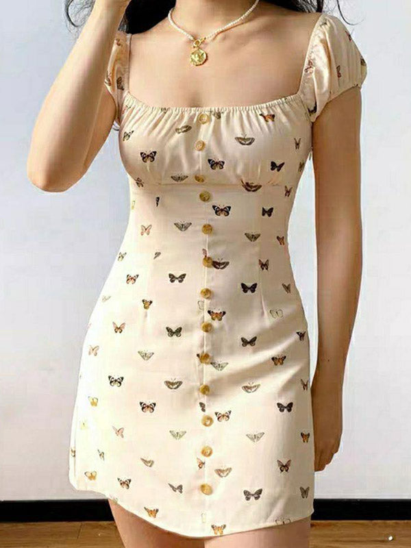 Description: Dreamed about butterfly patterns when summer comes. This such cute dress must be a perfect piece. it has butterflies allover. features stretchy cuffs. button embellished down to the front. and with a flattering square neck style. which can be worn in an off shoulder neckline. We're obsessed.