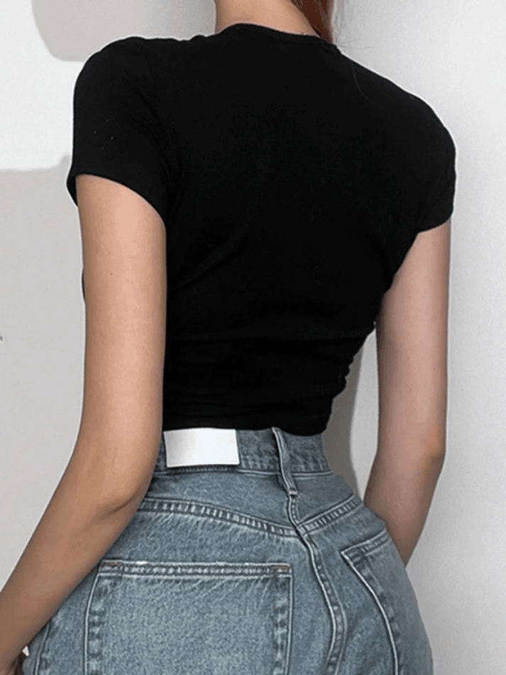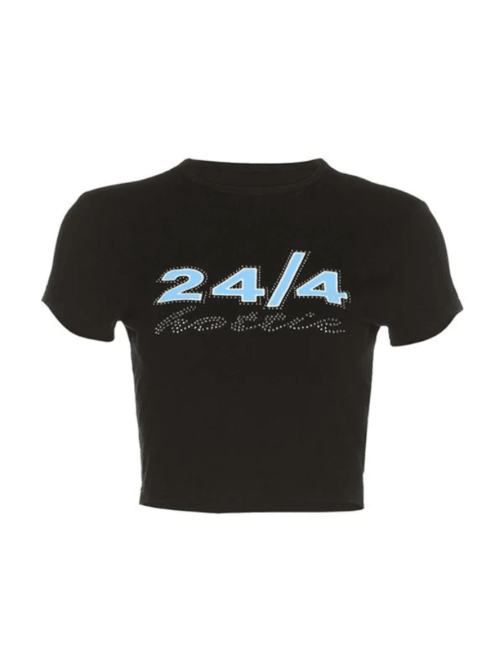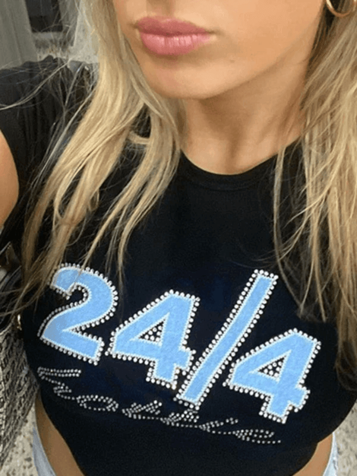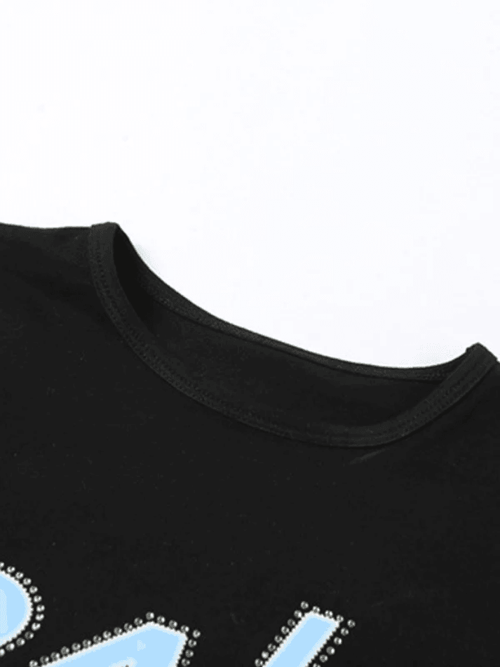 Description: Make a statement with this trendy and versatile rhinestone logo crop top. It's designed in a slim fit and cropped length. featuring a logo graphic with dazzling rhinestone embellishments. Perfect for fashion-forward Gen Z girls.