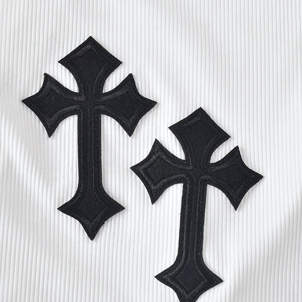 -Unique design: The combination of ribbed material and PU leather cross patch creates a stylish and edgy look that is sure to turn heads.