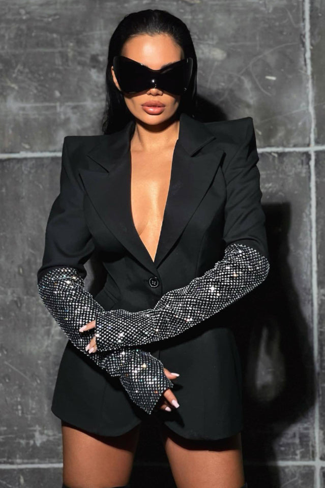 This Rosalie Suit Mini Dress In Black is the perfect blend of comfort and style. Crafted from lightweight fabric with a delicate balck finish. this blazer is a must-have for your wardrobe. Embellished with Sequined details. it strikes the right balance between modern and classic style.