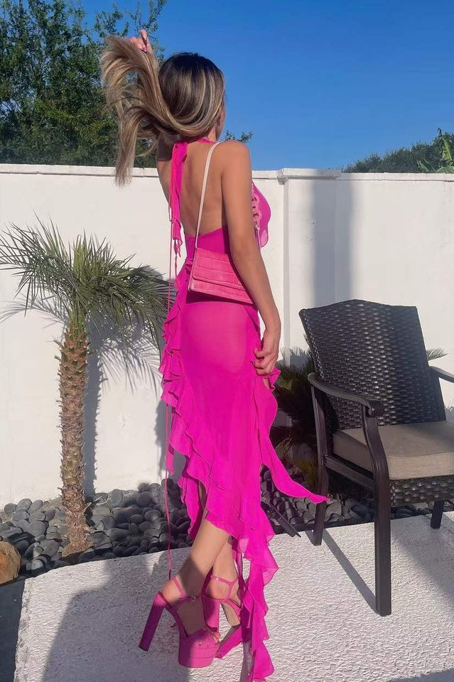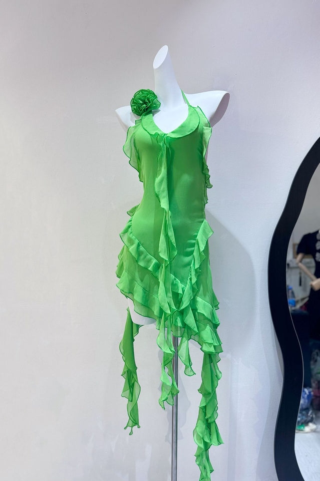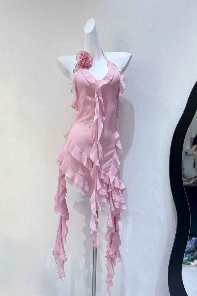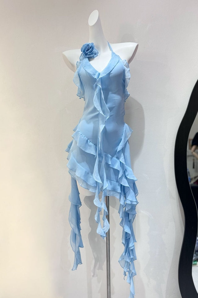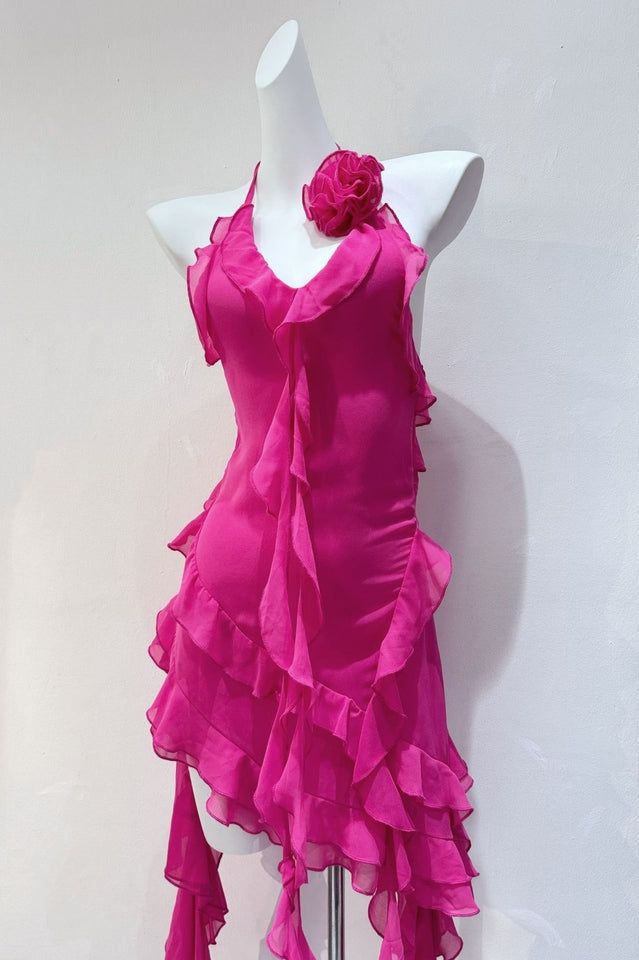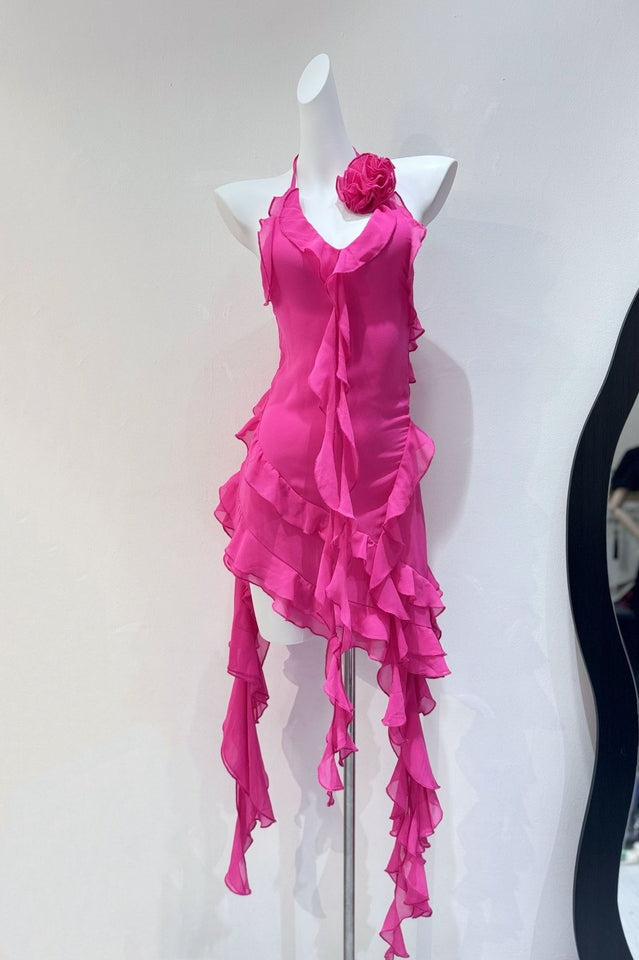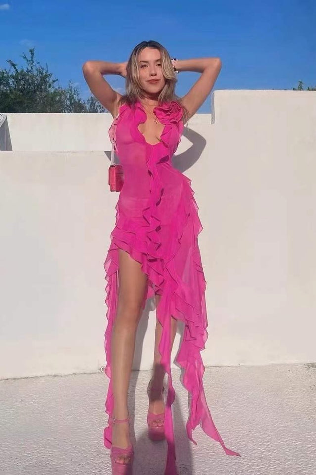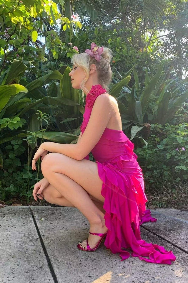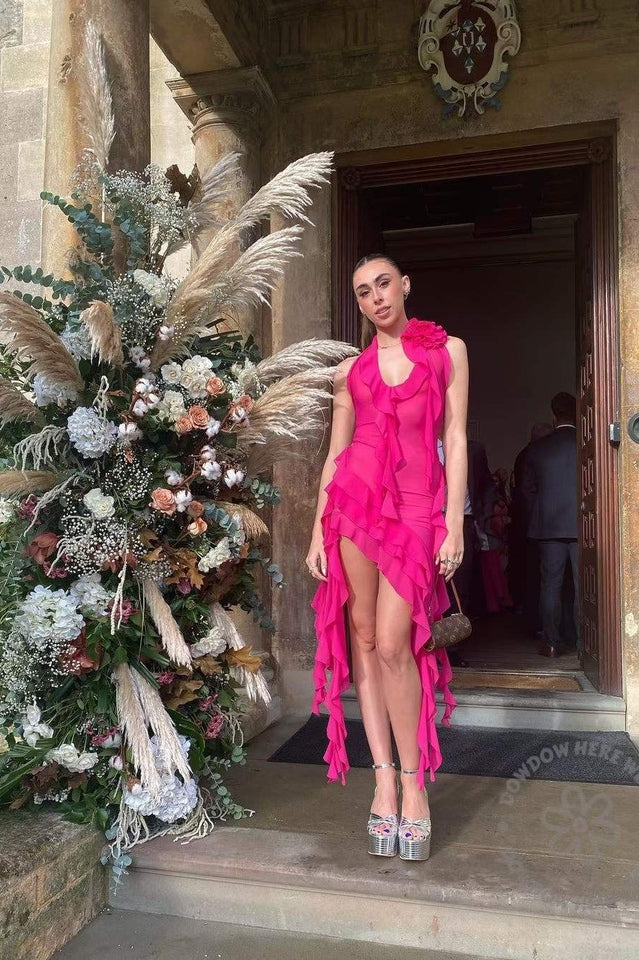 Discover elegance for your warm-weather occasions with the Rosalyn Black Flower Dress. Its asymmetric hemline lends graceful movement to every step you take. while a deep v gives it a sultry finish. A big flower adorns the left shoulder. creating a beautiful contrast that will have you looking effortless and chic. Perfect for the beach or a relaxing evening out. the Rosalyn Black Flower Dress is the definition of luxury.