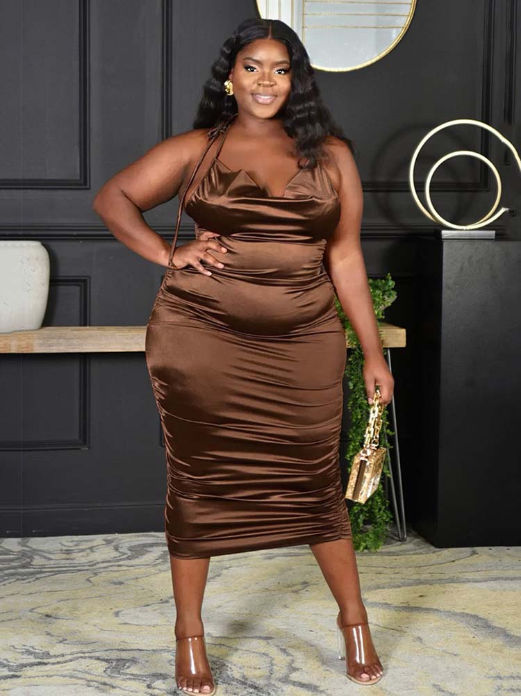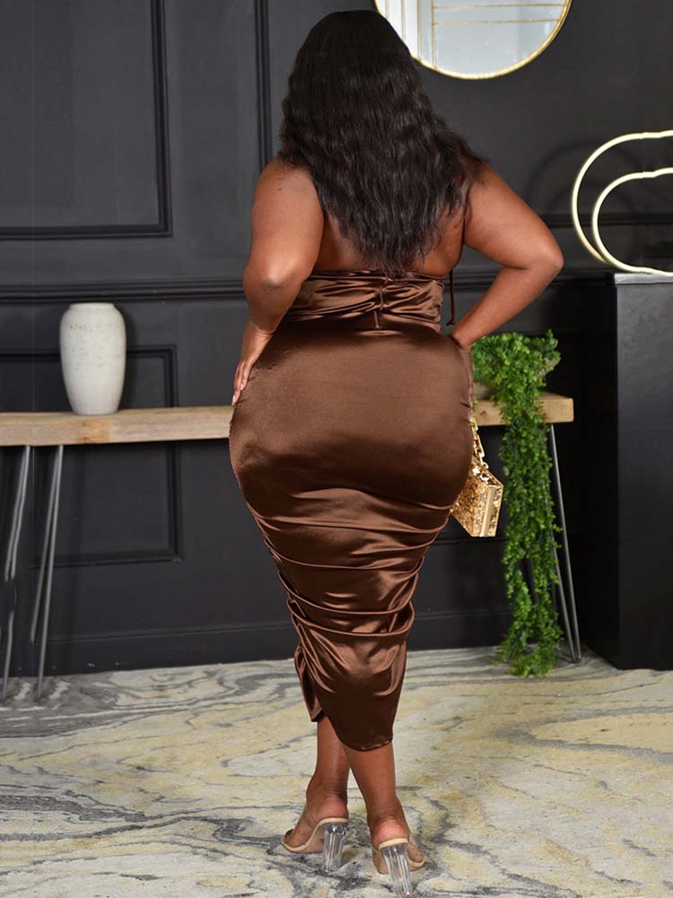 Ruched Halter Long Dress