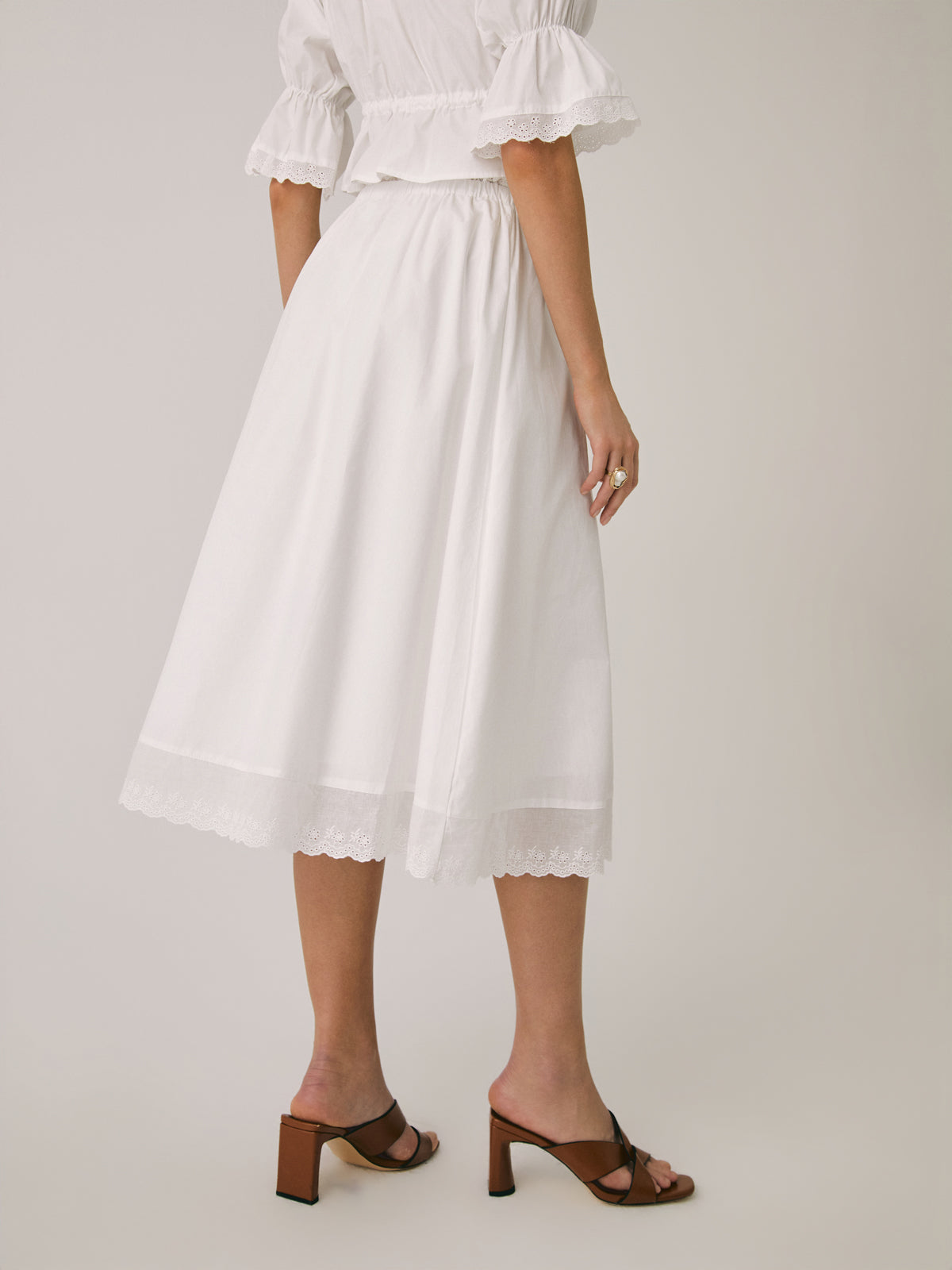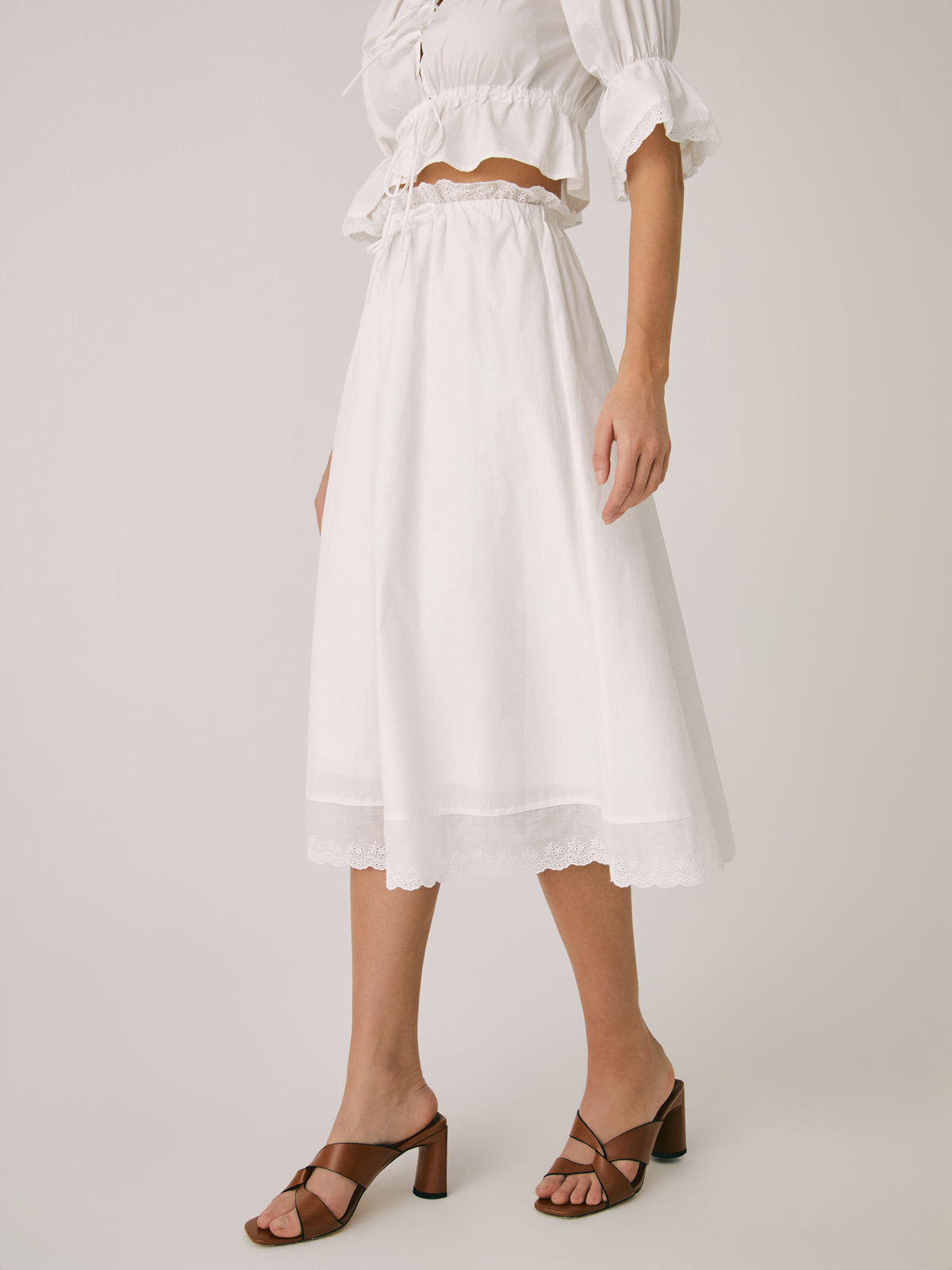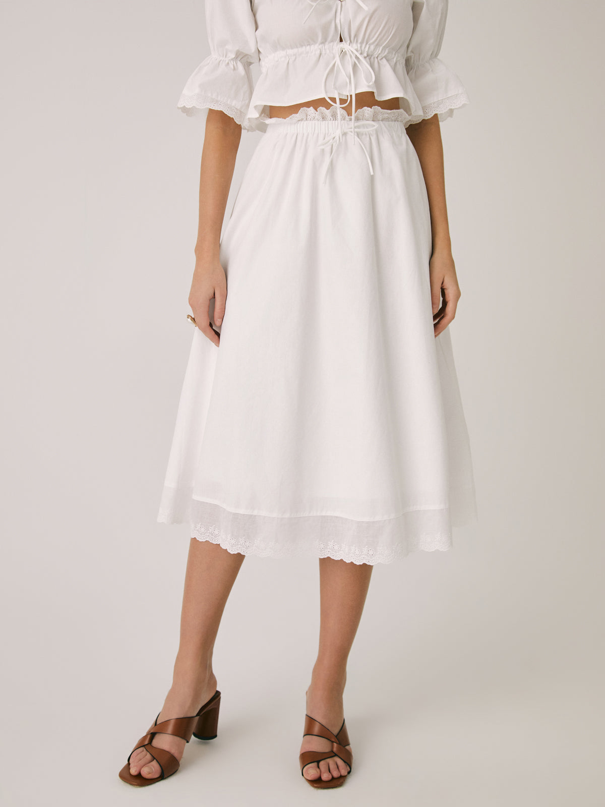 Ruffle Patchwork Lace Midi Skirt