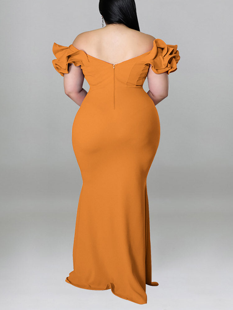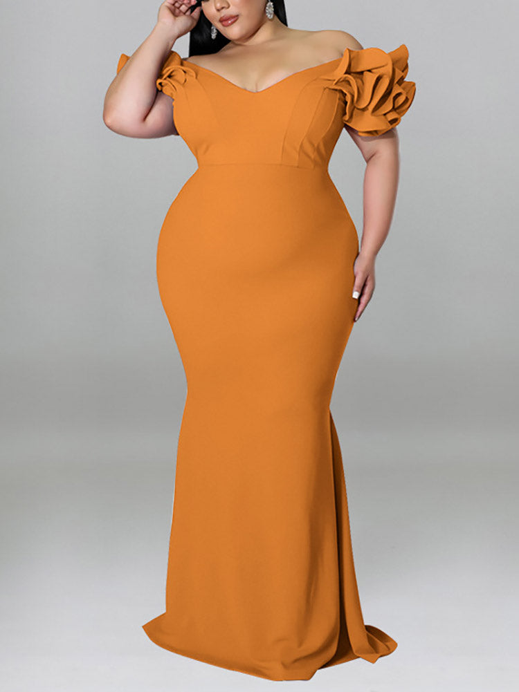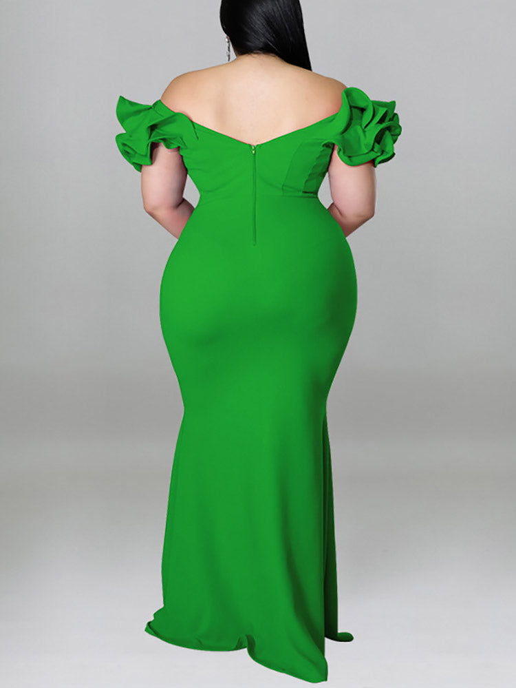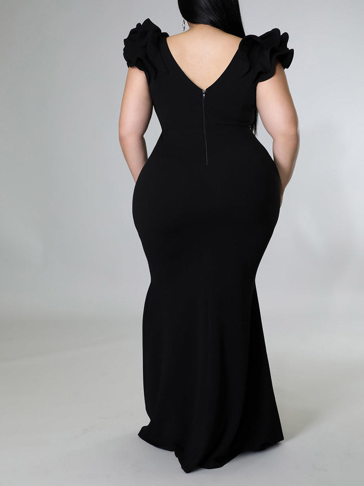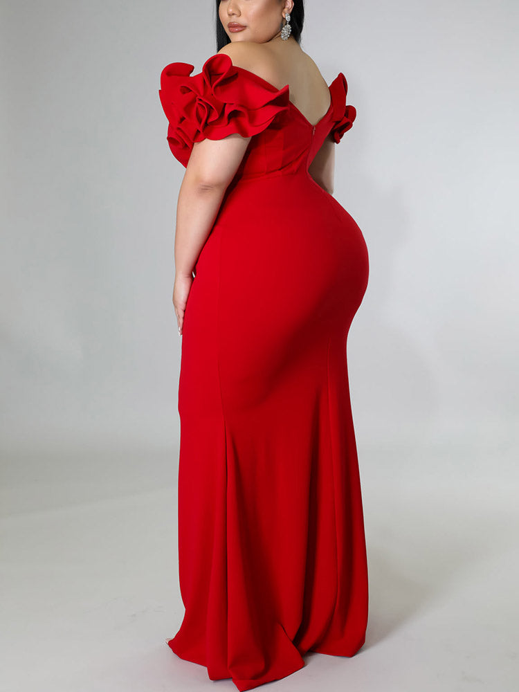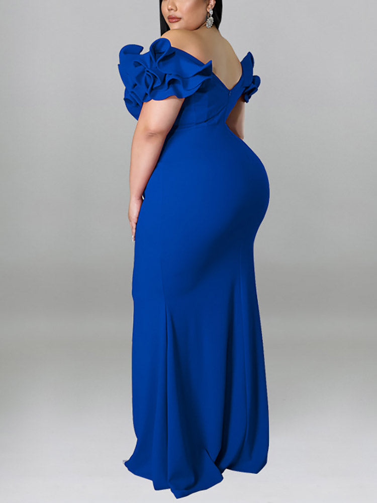 Ruffle Solid Evening Dress