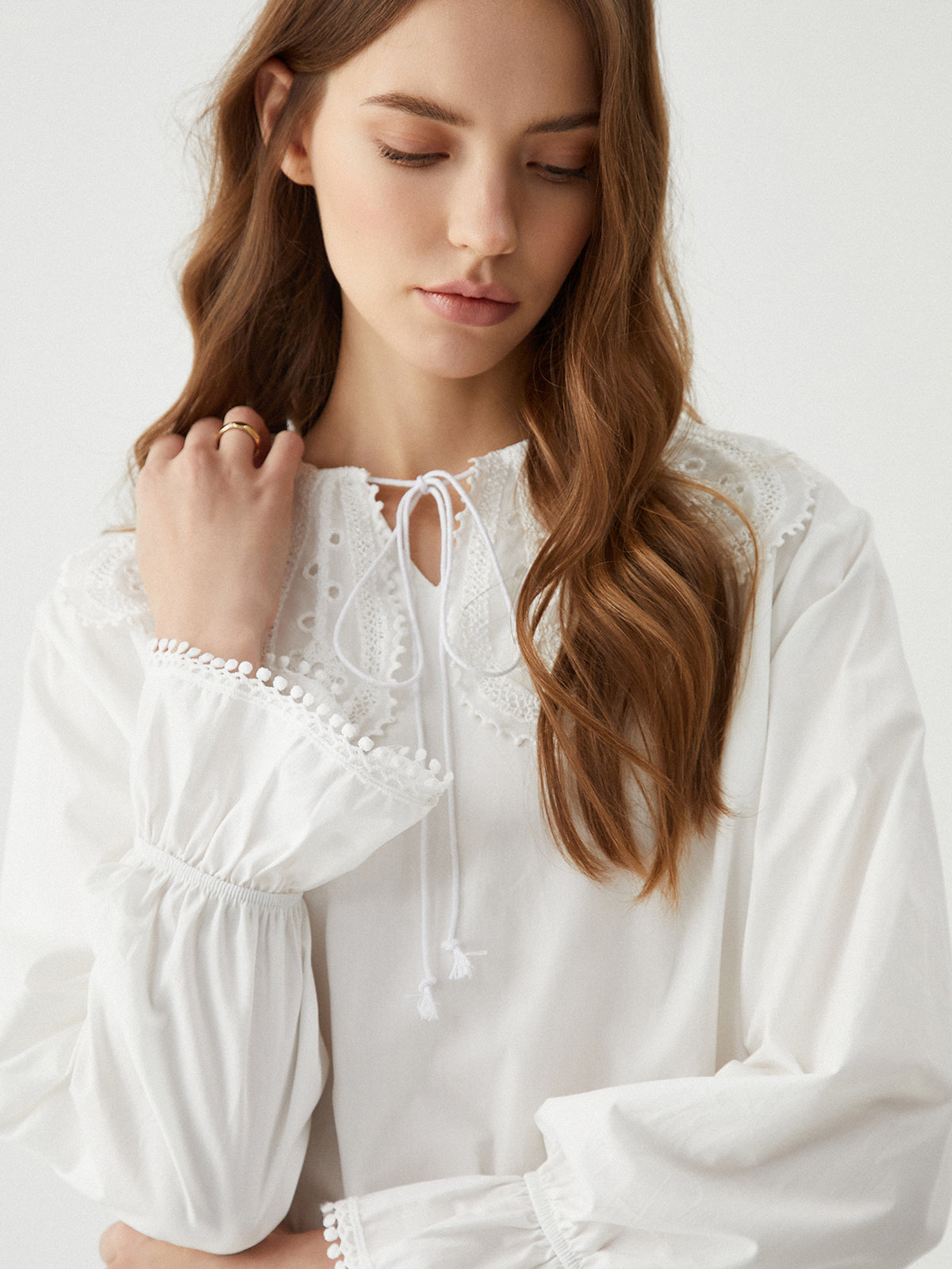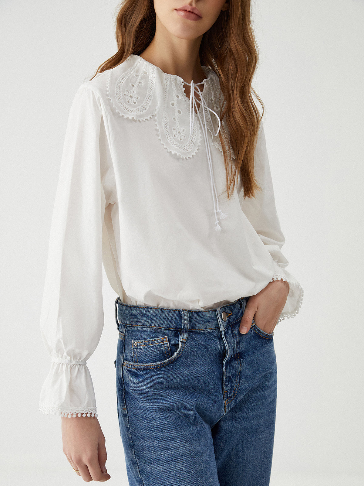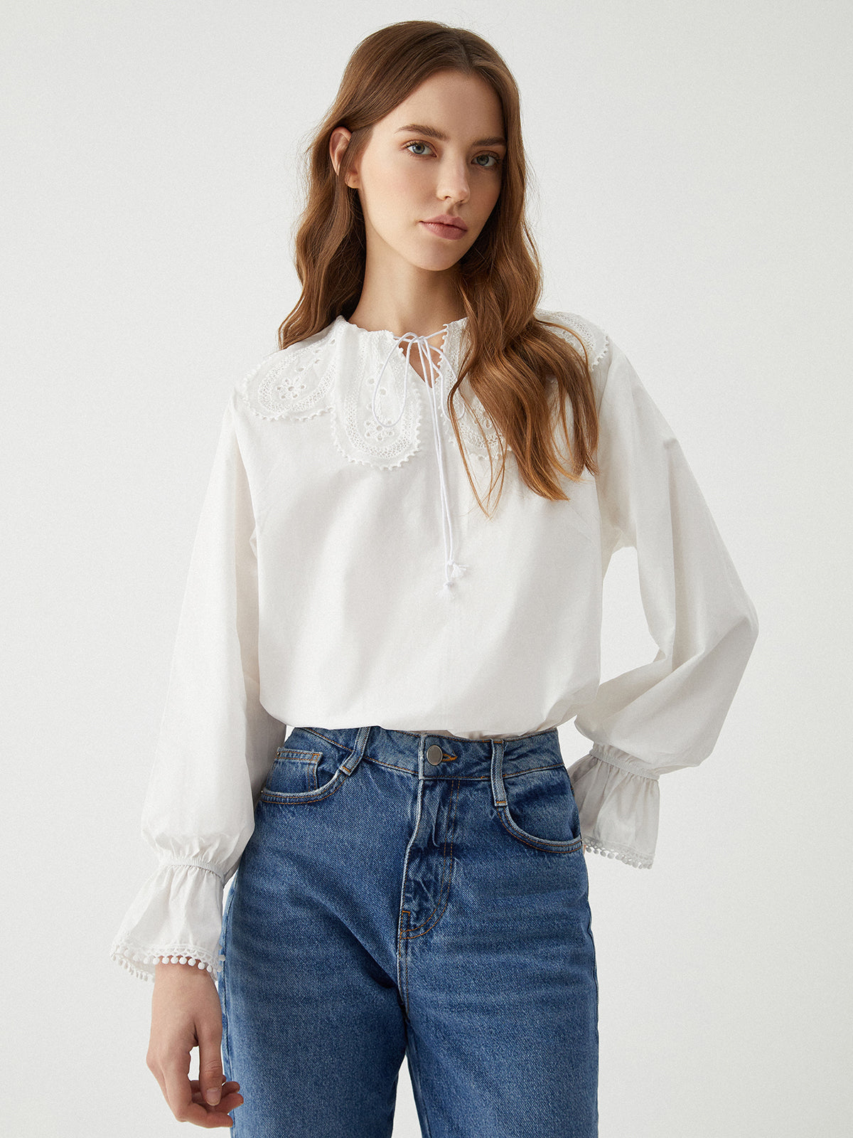 Ruffle Tie Neck Lantern Sleeve Shirt