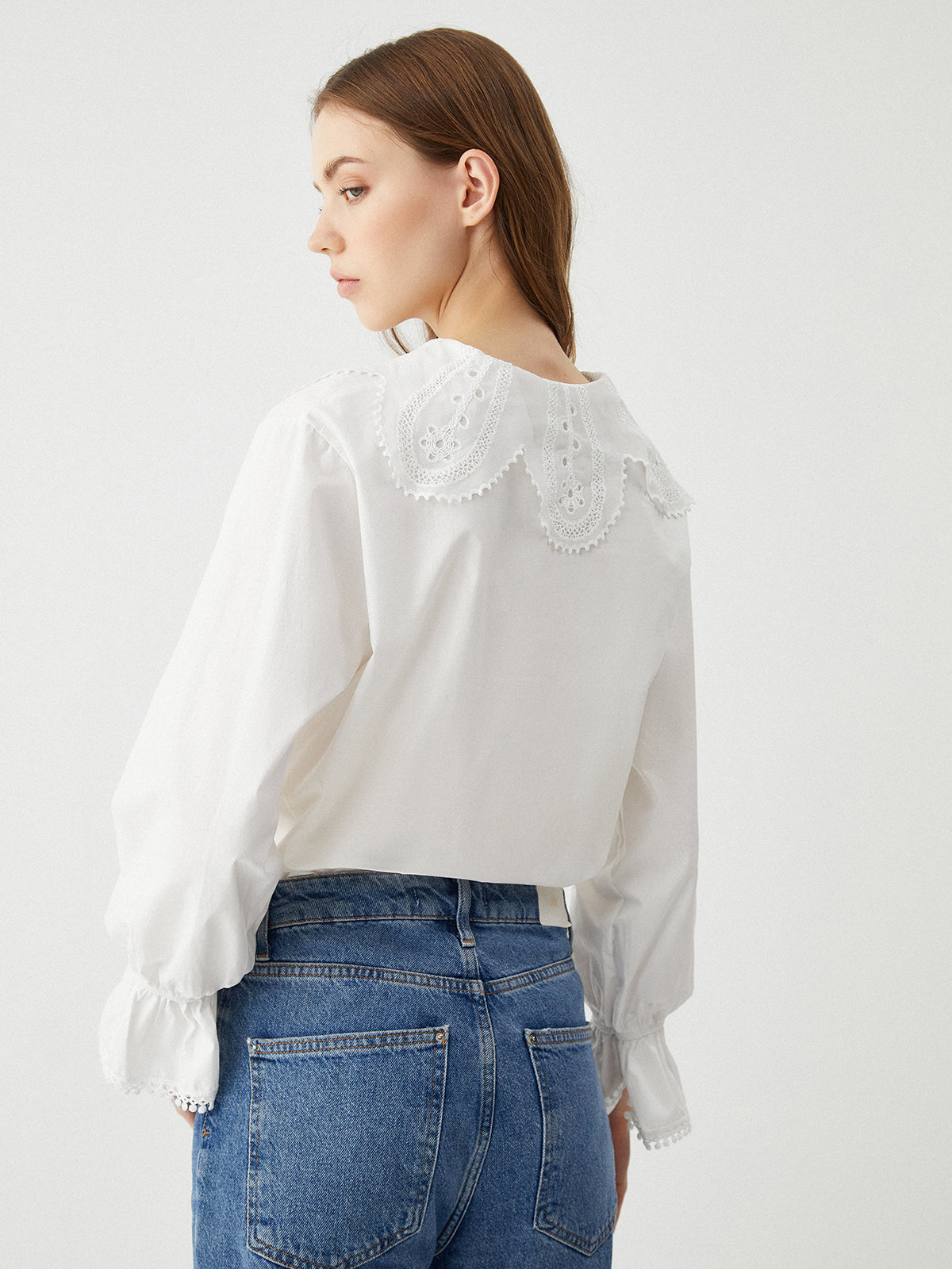 - Neckline: Ruffle Neck