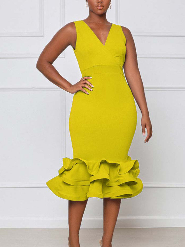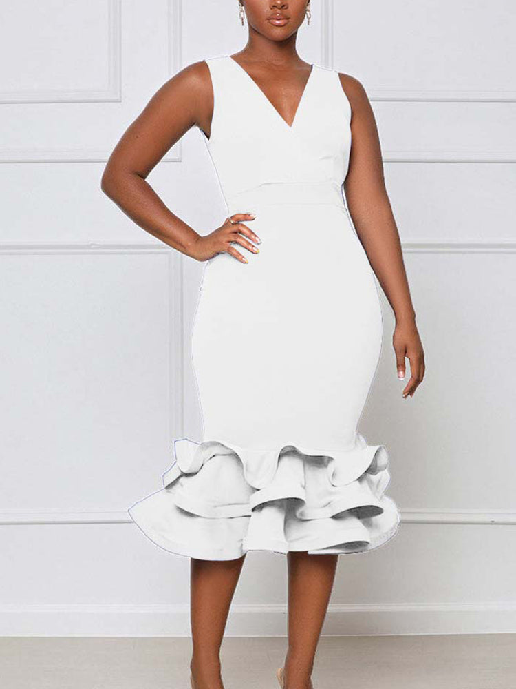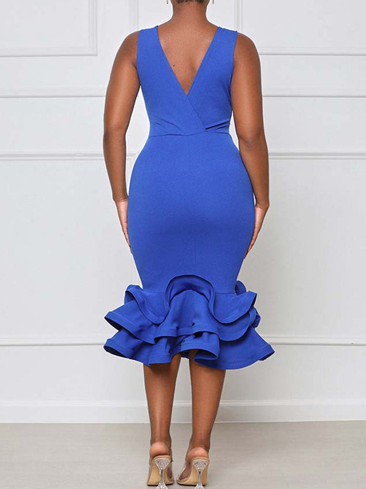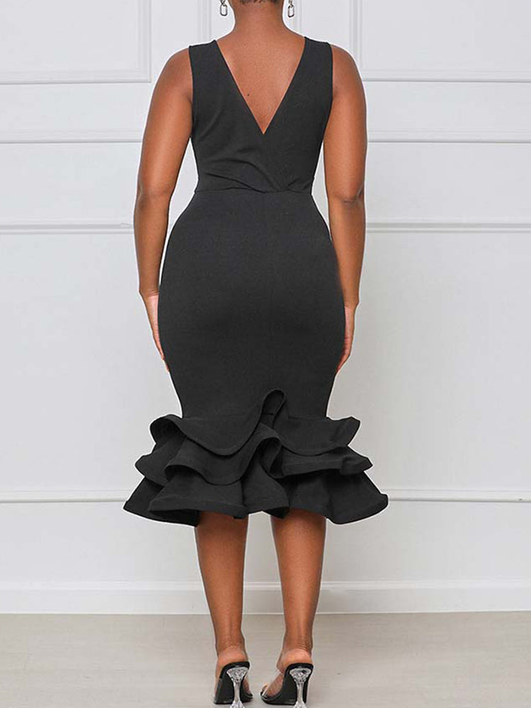 Ruffled Trim Bodycon Midi Dress