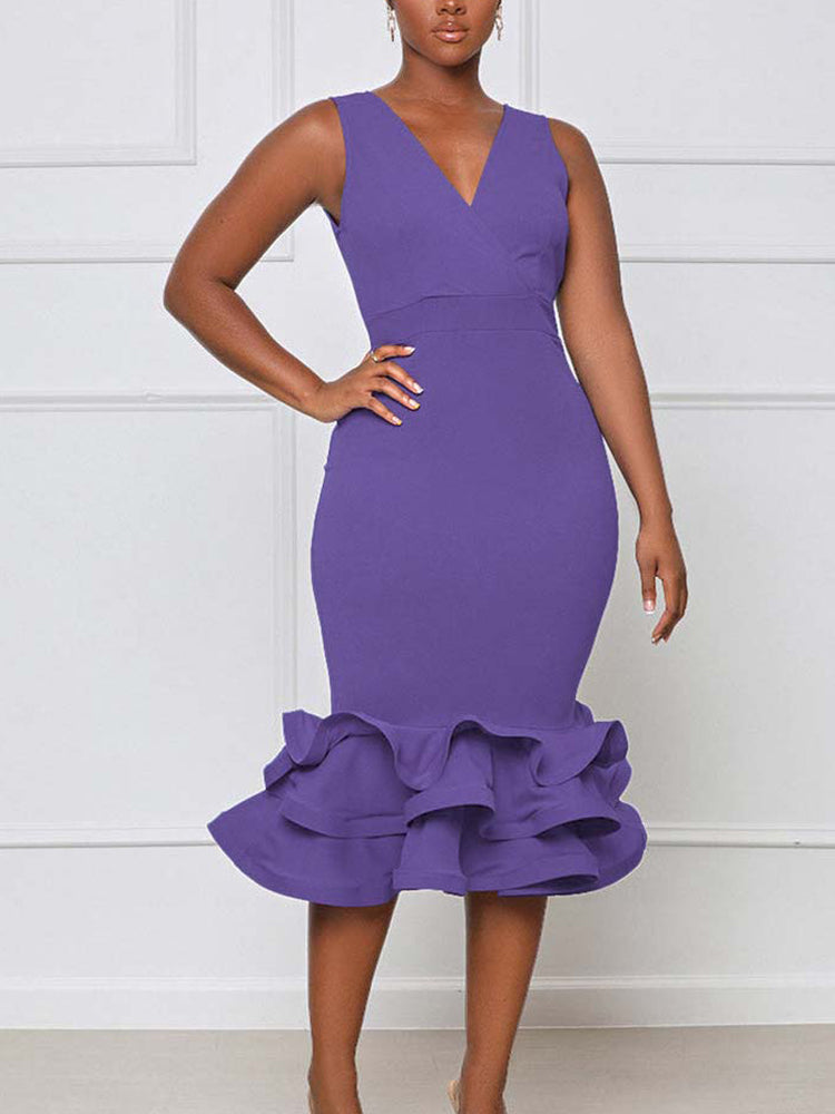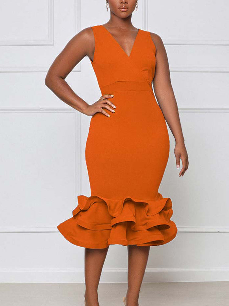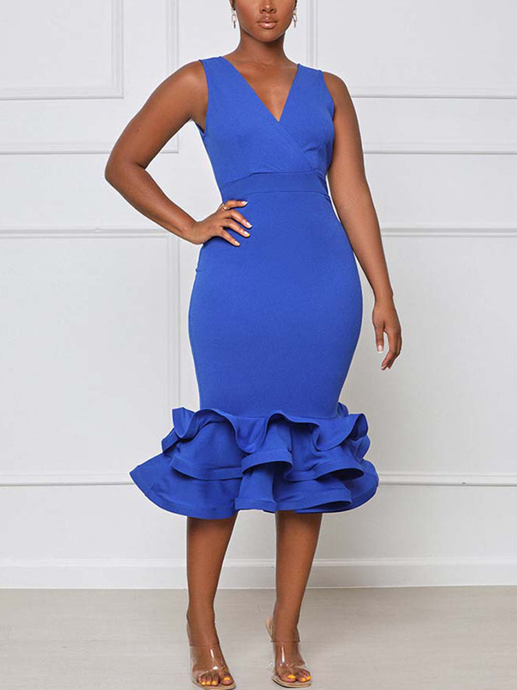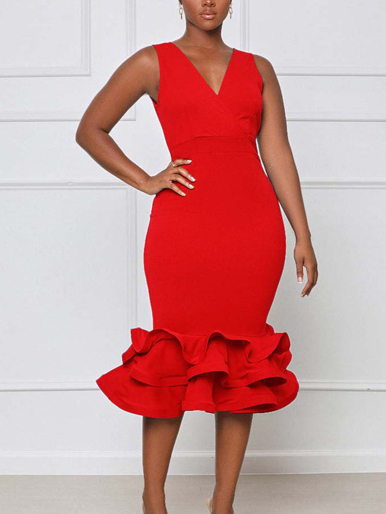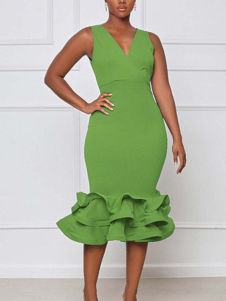 Ruffled Trim Bodycon Midi Dress