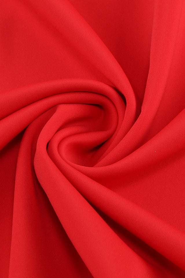 A flow-sweeping gown cut from the stretch jersey with a silky mesh lining and an alluring open back decorated with a crystal palm leaf. It has long flared sleeves. flat neckline and an additional supportive strap on the back.