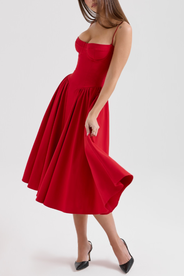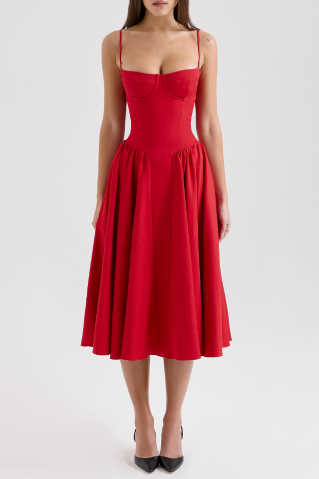 'Samaria' is your late-Summer one and done dress. Cut from a breathable twill fabric. it's boned through the bodice to cinch the waist and has a sweetheart neckline with underwired cups. The barely there straps adjust for the perfect fit and we love how the gathering adds pretty volume to the midi skirt. 'Samaria' has pockets and is fully lined for comfort with a zip to the back for easy on.