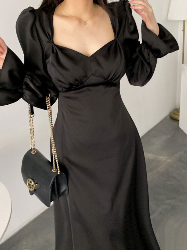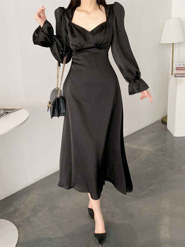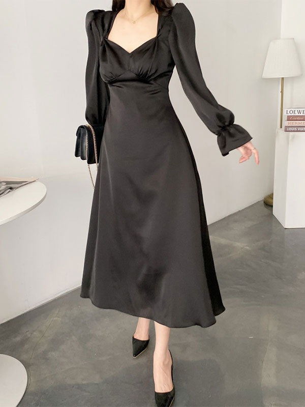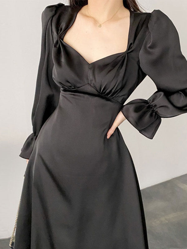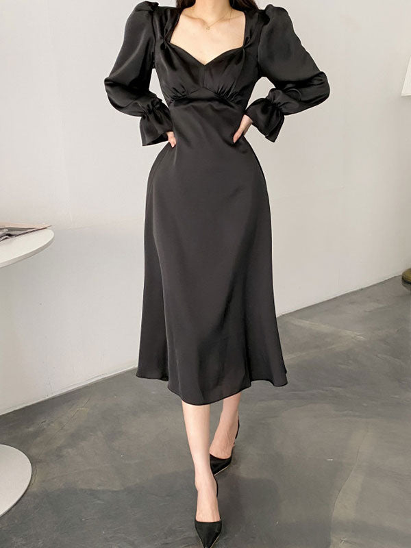 Design: Concealed Zip Fastening Along Back. Ruched Detail. Flared Cuffs