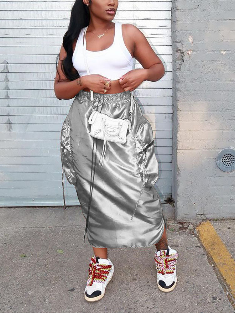Satin Side Pocket Skirt