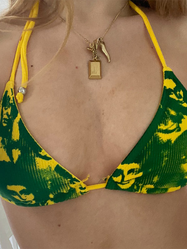 -Halter Bikini Top: The halter bikini top design provides ample support for your bust while also creating a fashionable look. The adjustable tie strap detail allows you to customize the fit for maximum comfort.