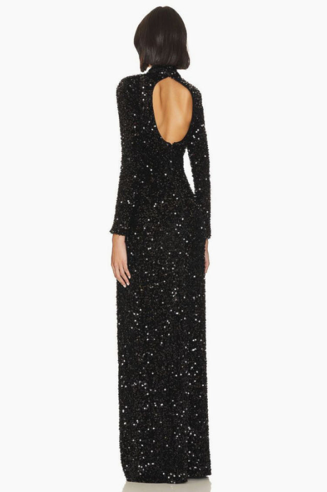 The intricate sequin embellishments add a touch of glamour. while the side slit allows for easy movement. Made with high-quality materials. this dress exudes elegance and sophistication. Perfect for the fashion-forward individual.
