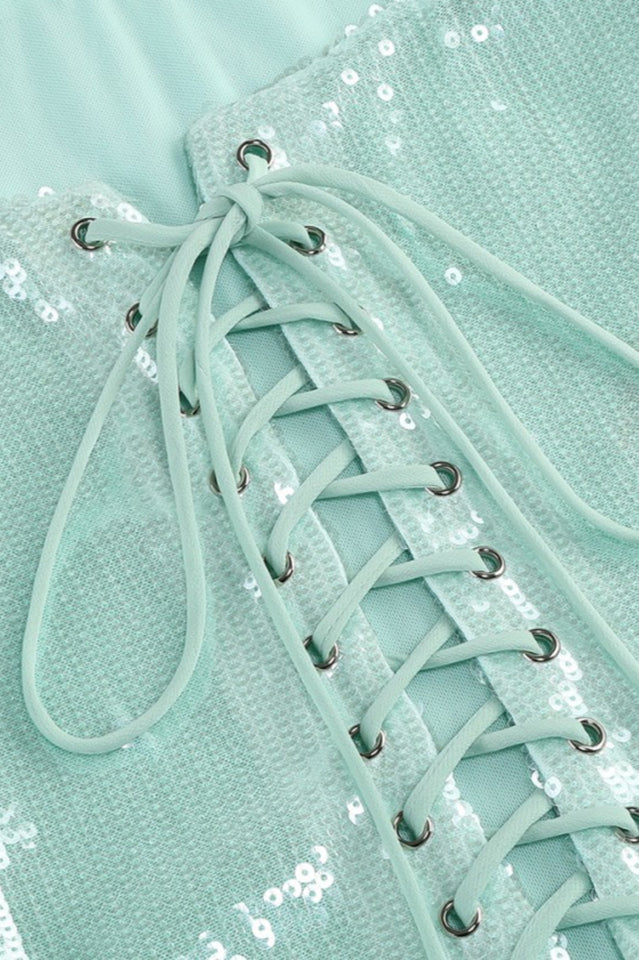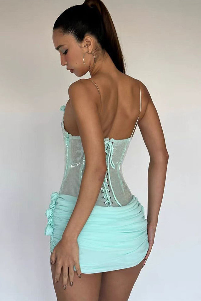 Sequin Floral Draped Corset Dress