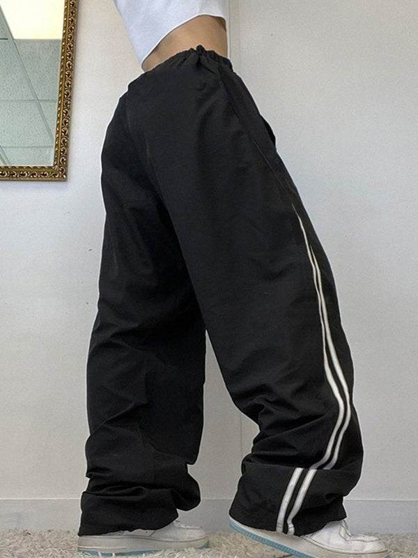 Description: Back to retro but sporty aesthetics for the new seasons. These casual pants sit to a flattering elasticated tie waist design. features contrast striped detail on both sides. It's perfect for chic streetwear or prep coolgirl vibes.