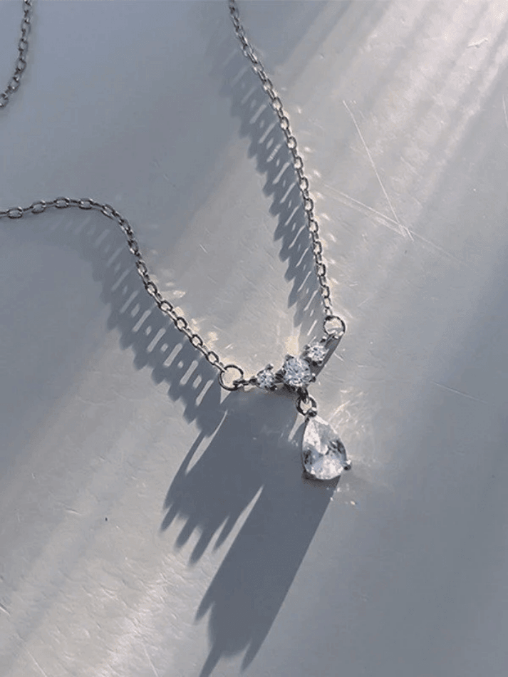 Silver Rhinestone Drop Decor Necklace