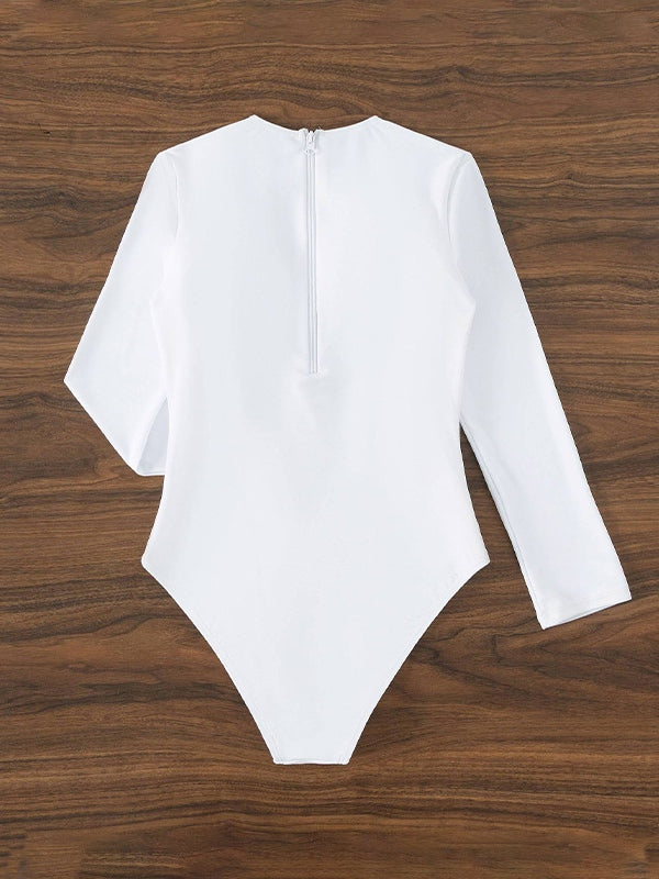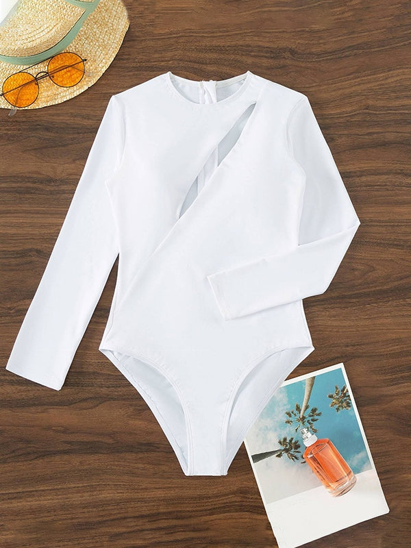 Slash Cutout Long Sleeve One Piece Swimsuit