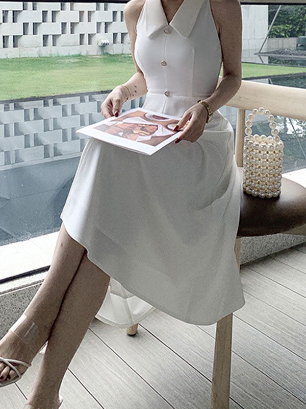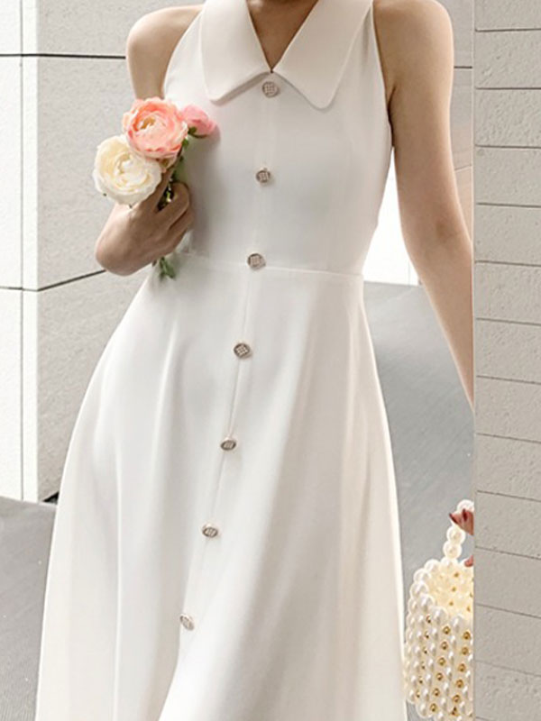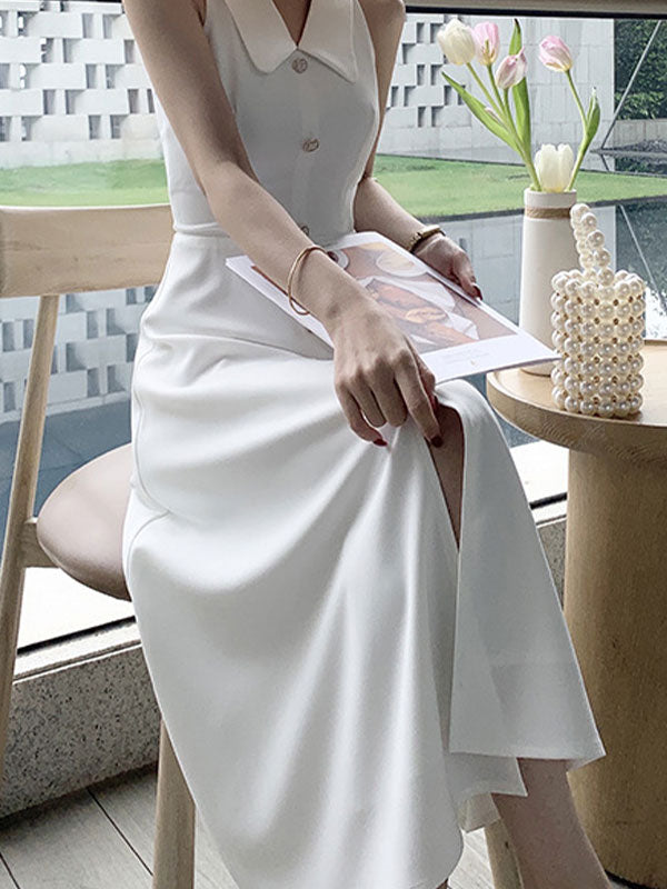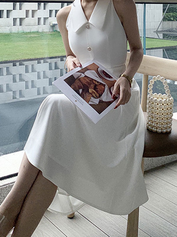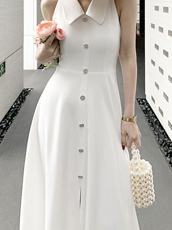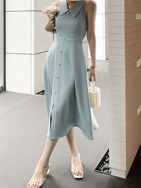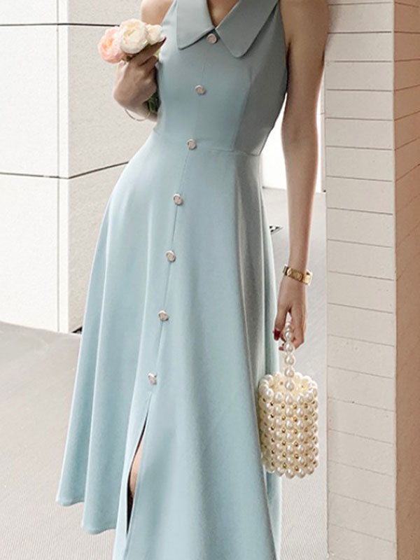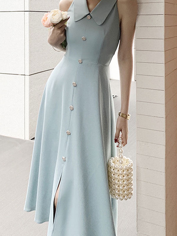 Sleeveless Polo Neck Buttoned Maxi Dress