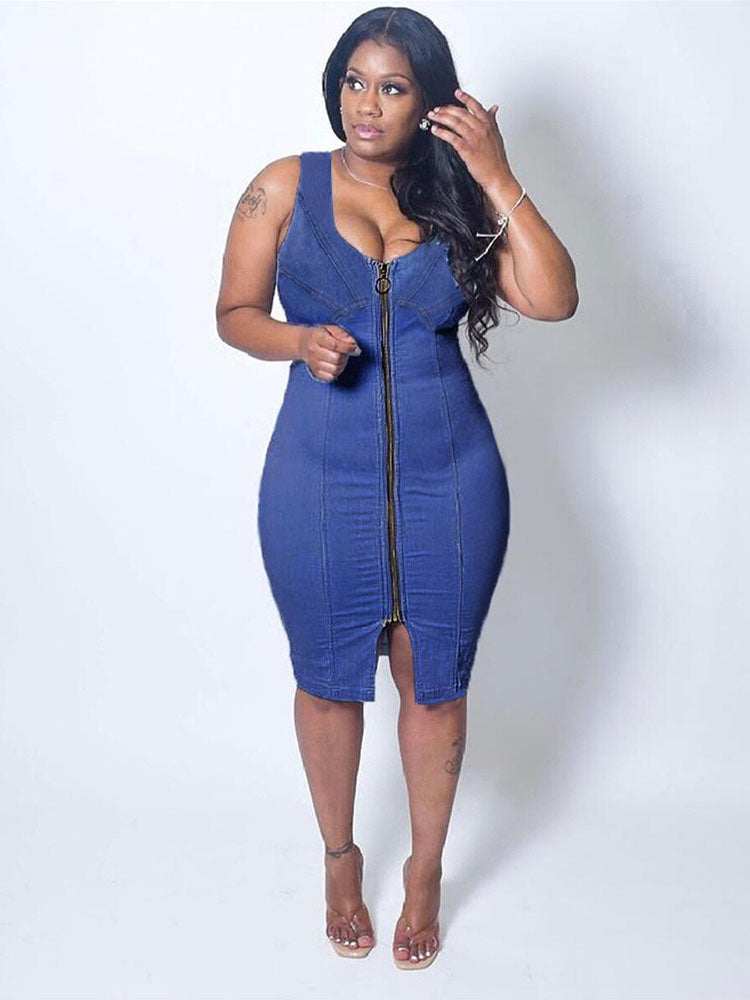 Sleeveless Zipper Slim Denim Dress