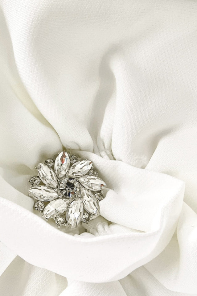 Prepare to captivate all attention in the Solene Off Shoulder Flower Maxi Bandage Dress. This elegant black garment showcases an exquisite off shoulder silhouette and a tasteful back slit. The focal point is the chest area. adorned with oversized white flowers. Ideal for commanding attention and making a statement at any occasion.