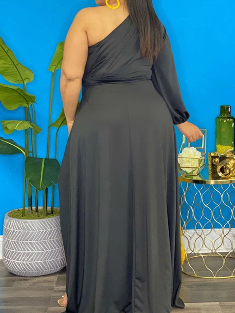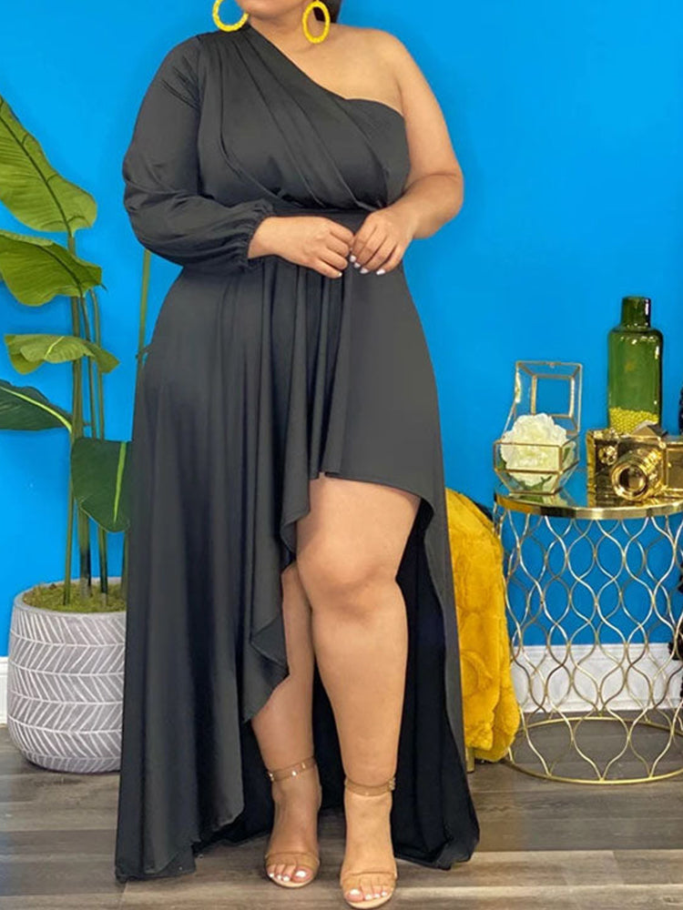 Solid O Neck Irregular Dress