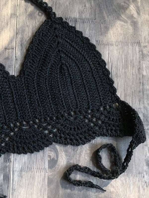 Solid Color Halter Crochet Bikini Top