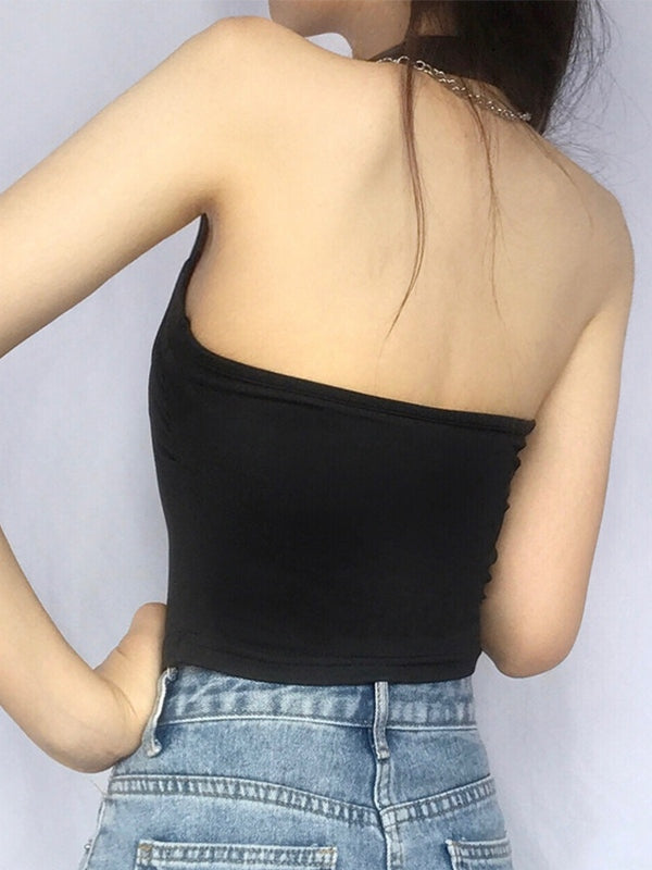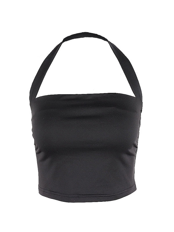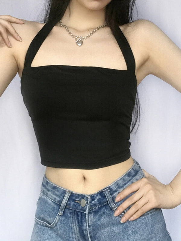 Solid Color Halter Cropped Tank Top