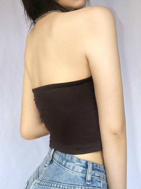 Description: Dressed up this effortless tank top. casual or for occasions. Cutting to a tighten silhouette. it has a halter bandeau neck style. and with slightly ruched detail along side.