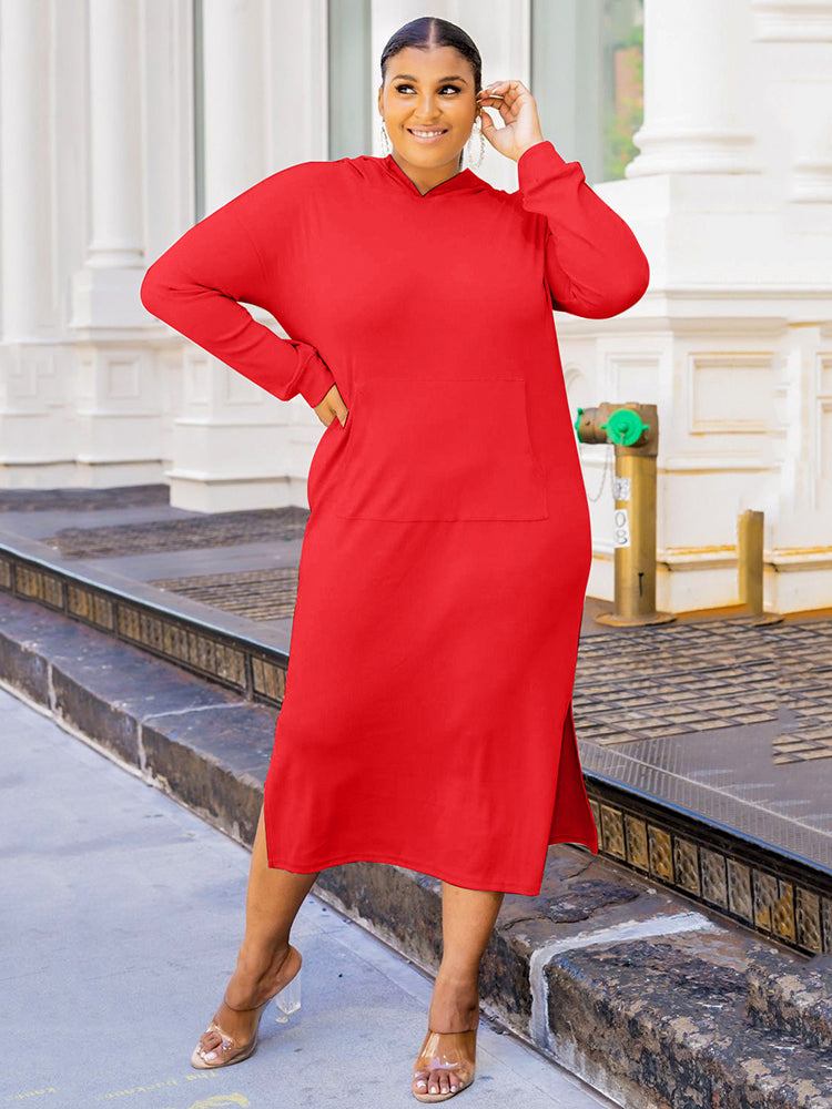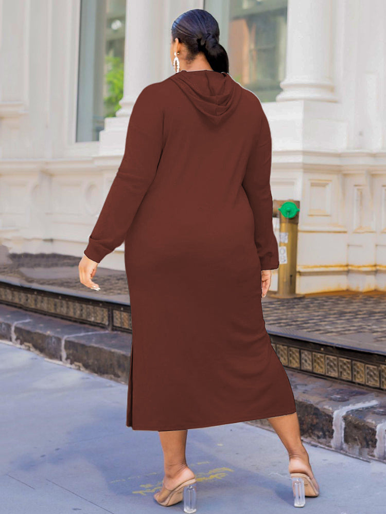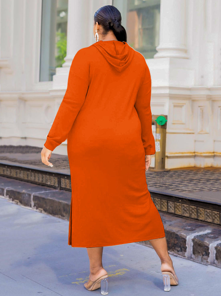 Solid Color Hoodie Long Dress