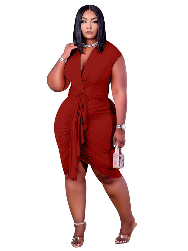 Solid Color Wrap Ruched Dress
