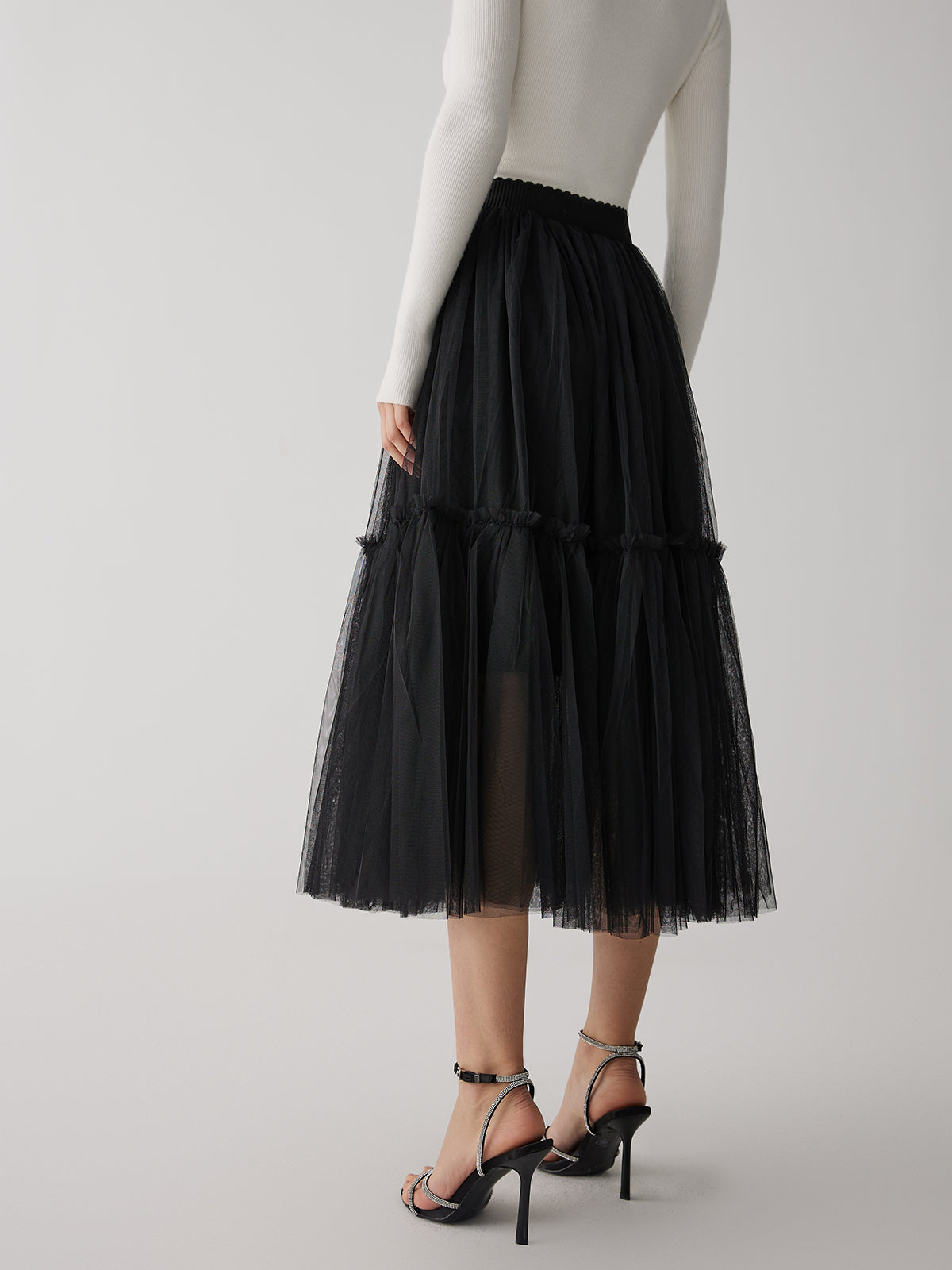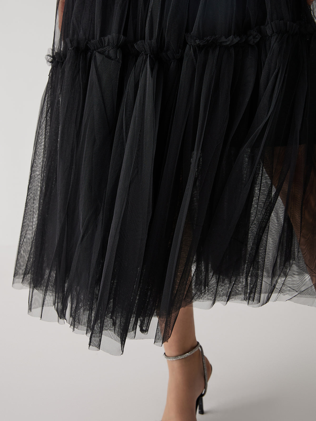 Solid Mesh Midi Skirt