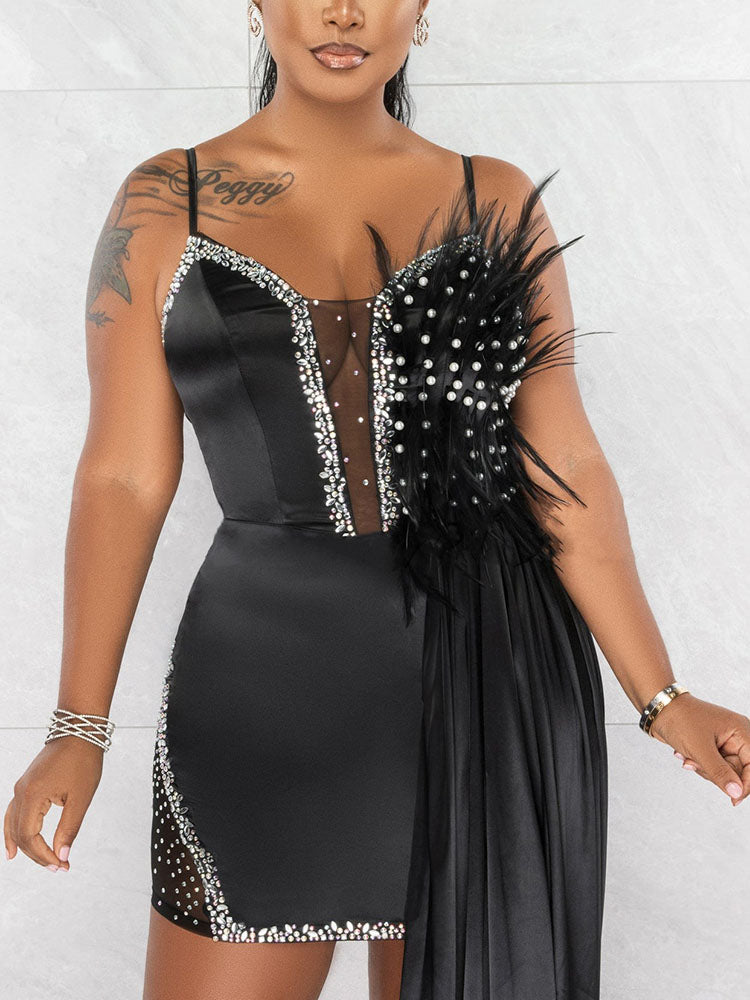 Spaghetti Strap Feathers Ribbon Dresses