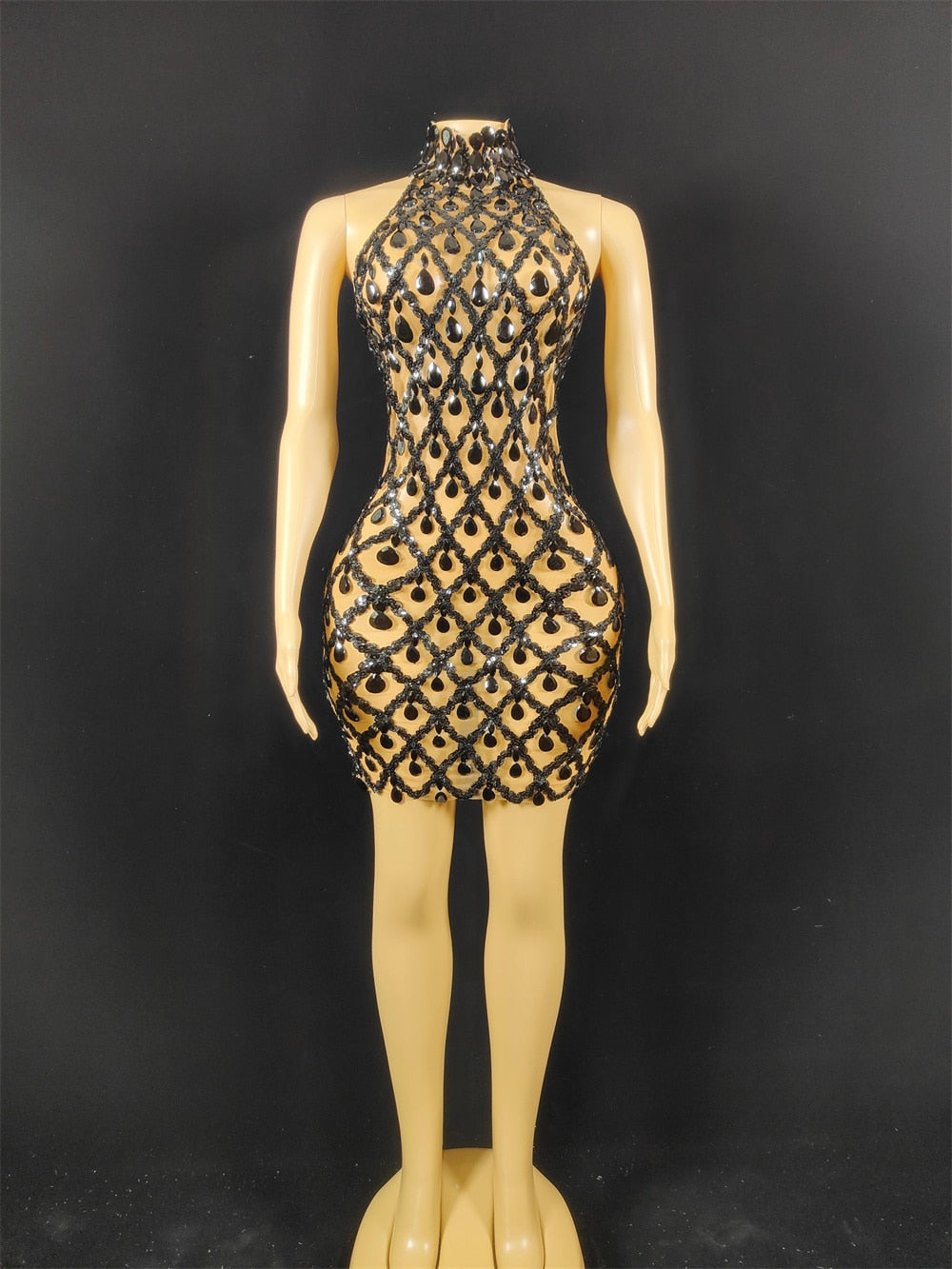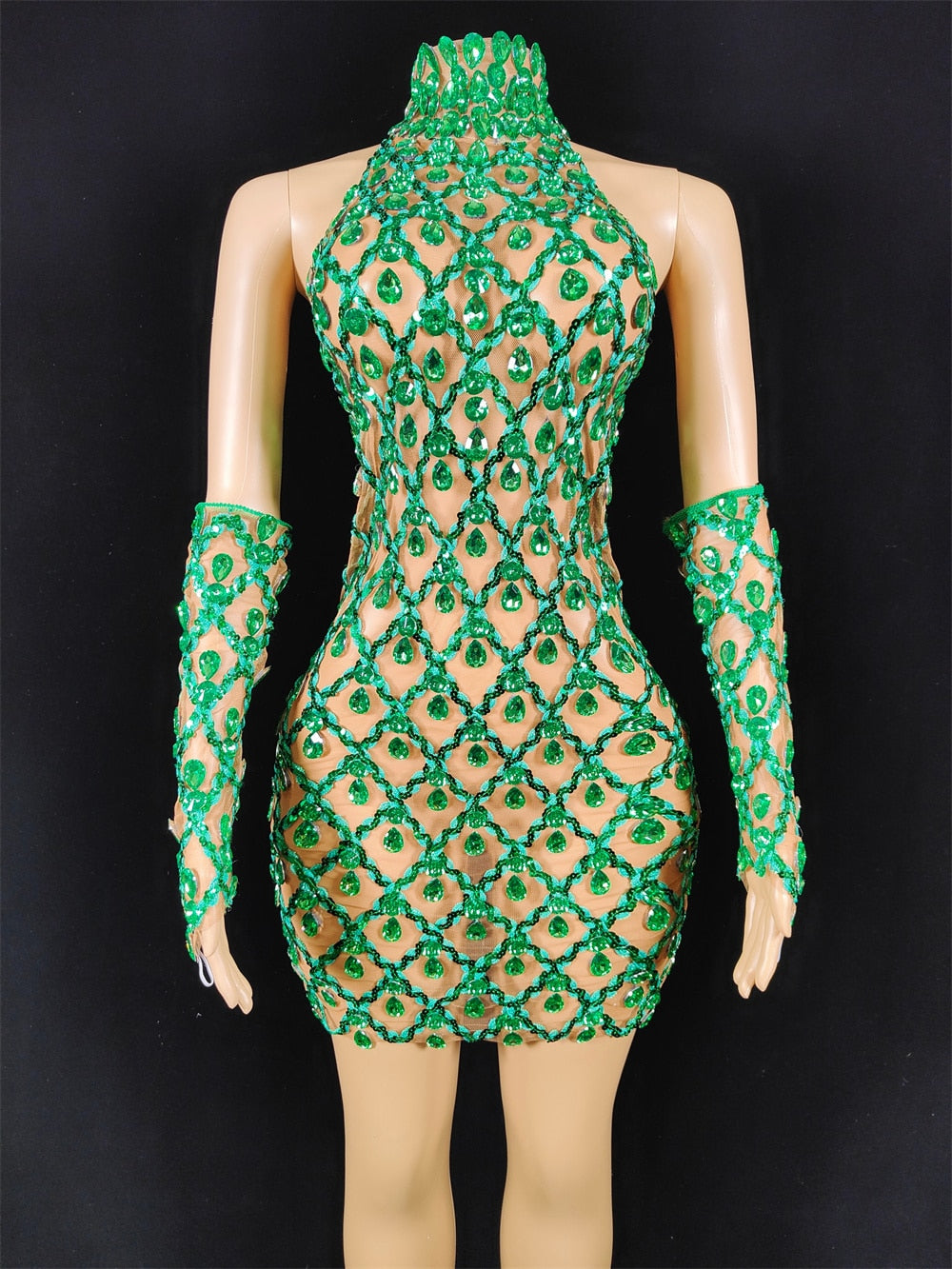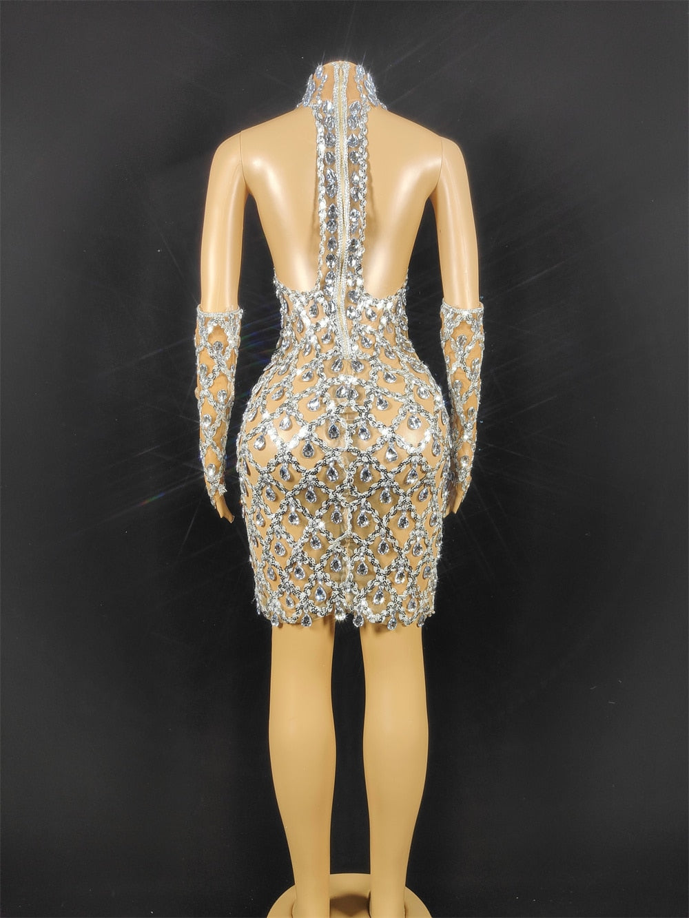 Sparkly Silver Rhinestone Mirror Elastic fabric short Dress
