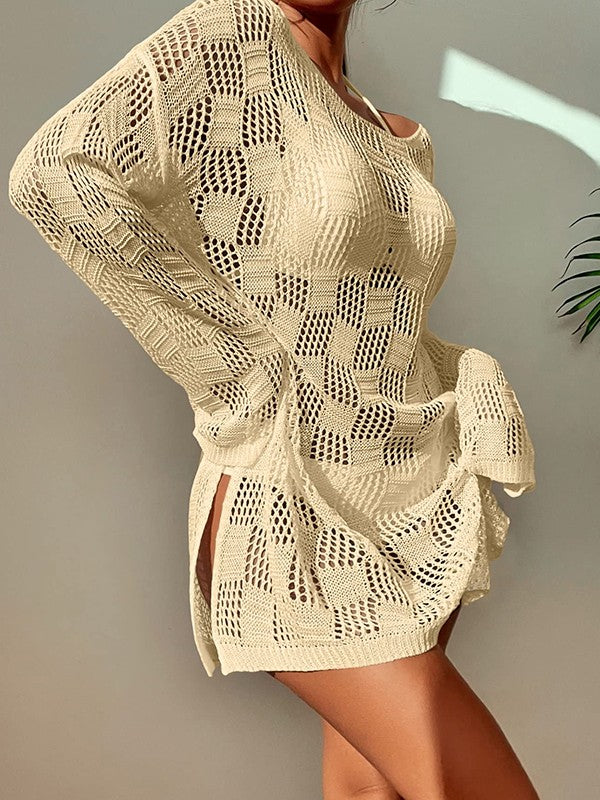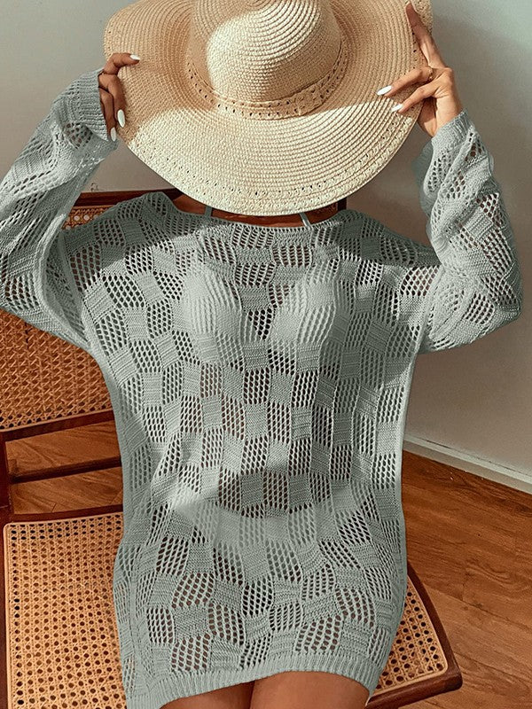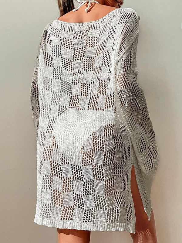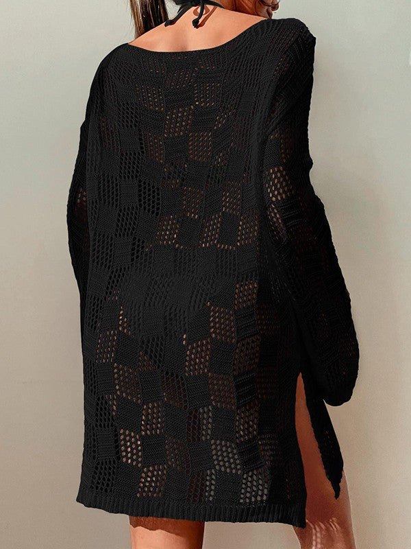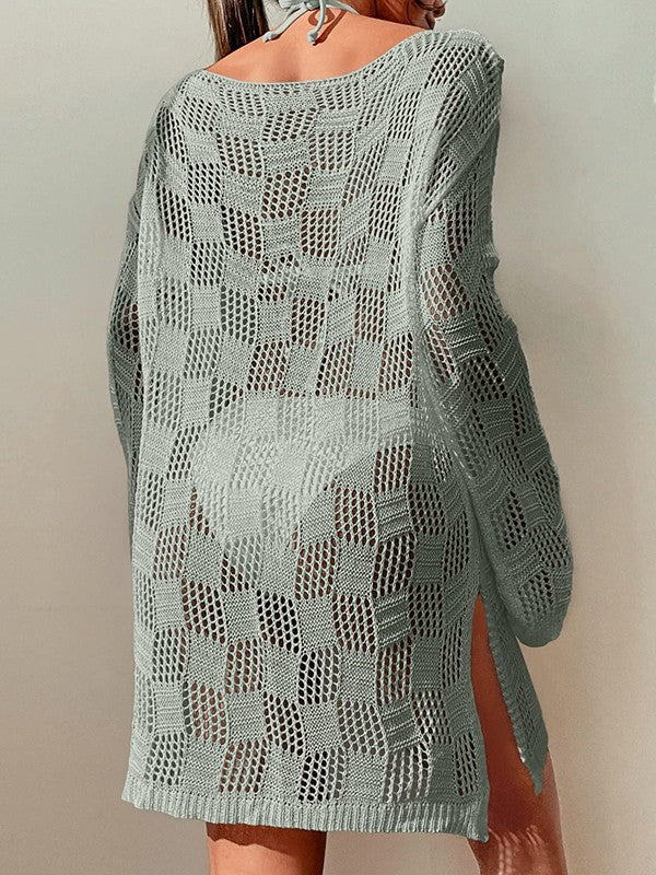 Split Long Sleeve Cover Up Mini Dress