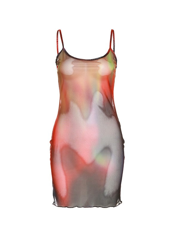 Split Sheer Mesh Mini Dress
