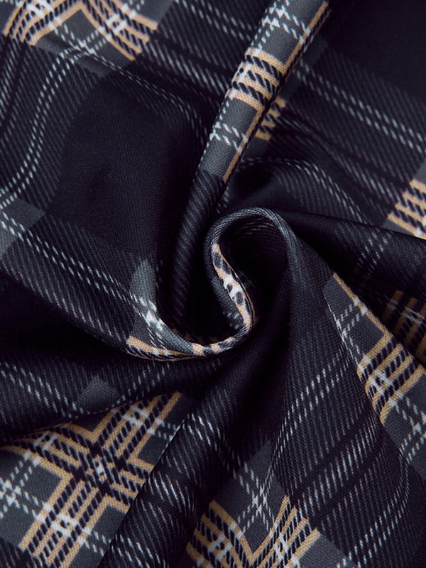 Description: This retro girls mini dress has tank shoulder straps style. with checkered-inspired print allover. it features split hem. u-cut open back. and with a concealed zip fly to the back.
