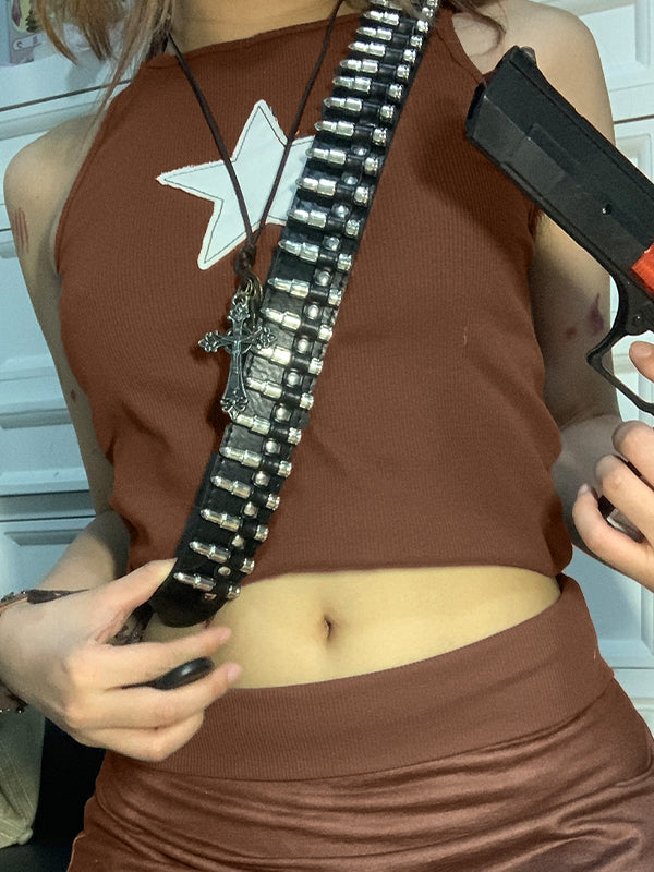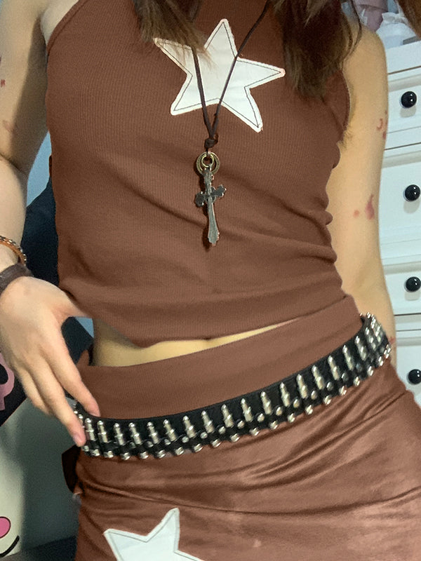 Star Embroidered Rib Cropped Tank Top