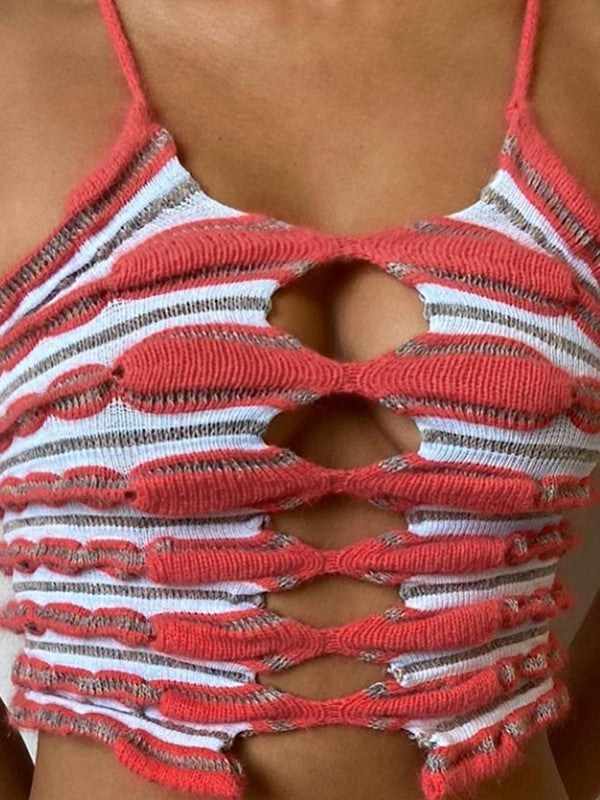 Striped Cutout Knitted Two Piece Set