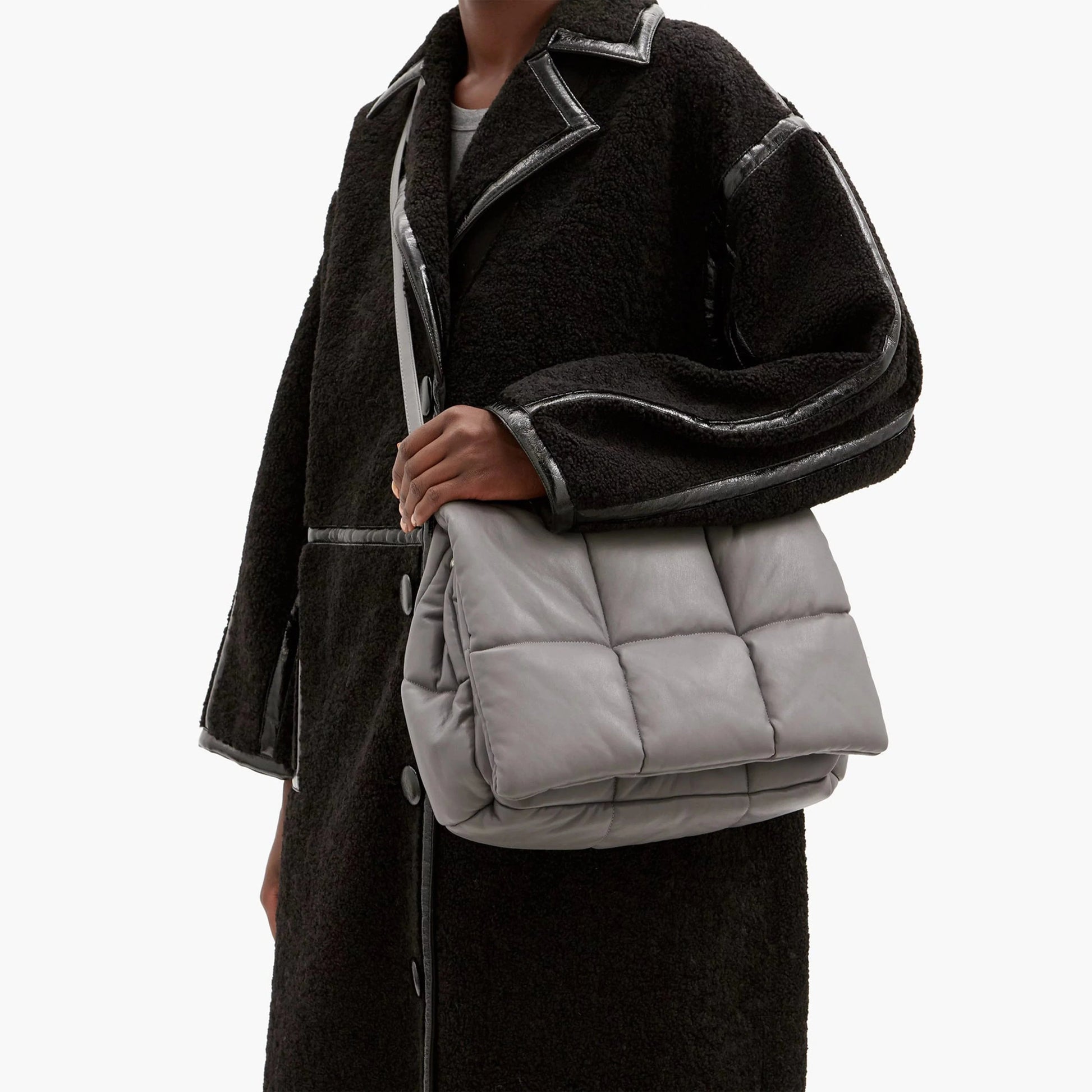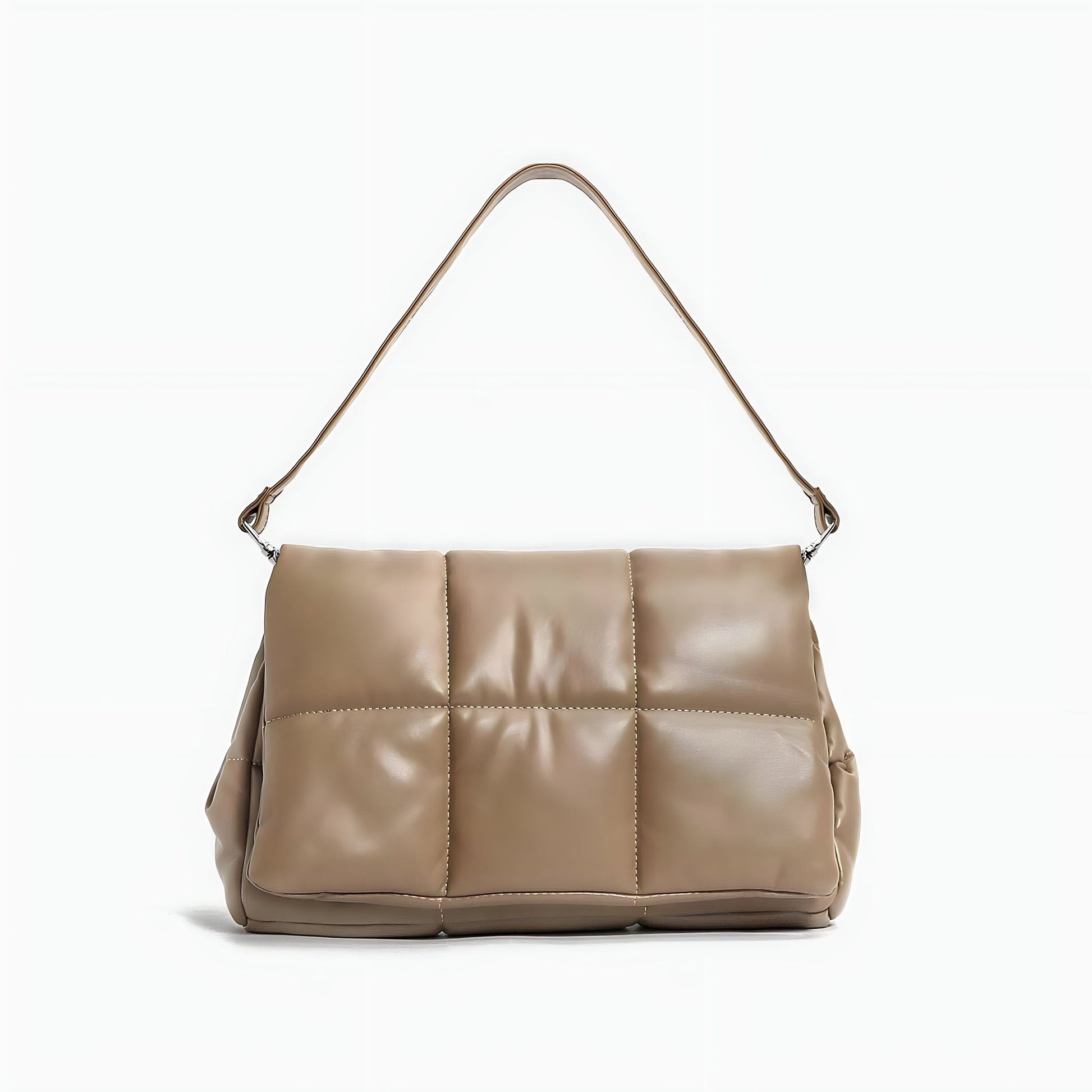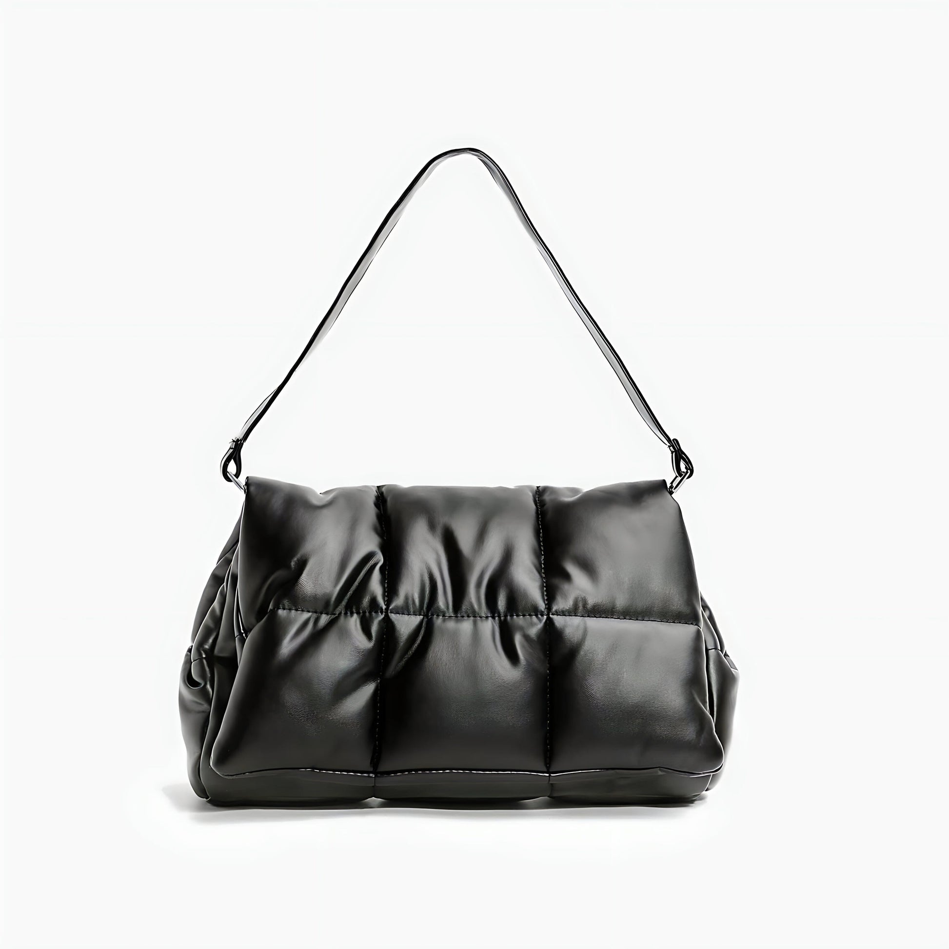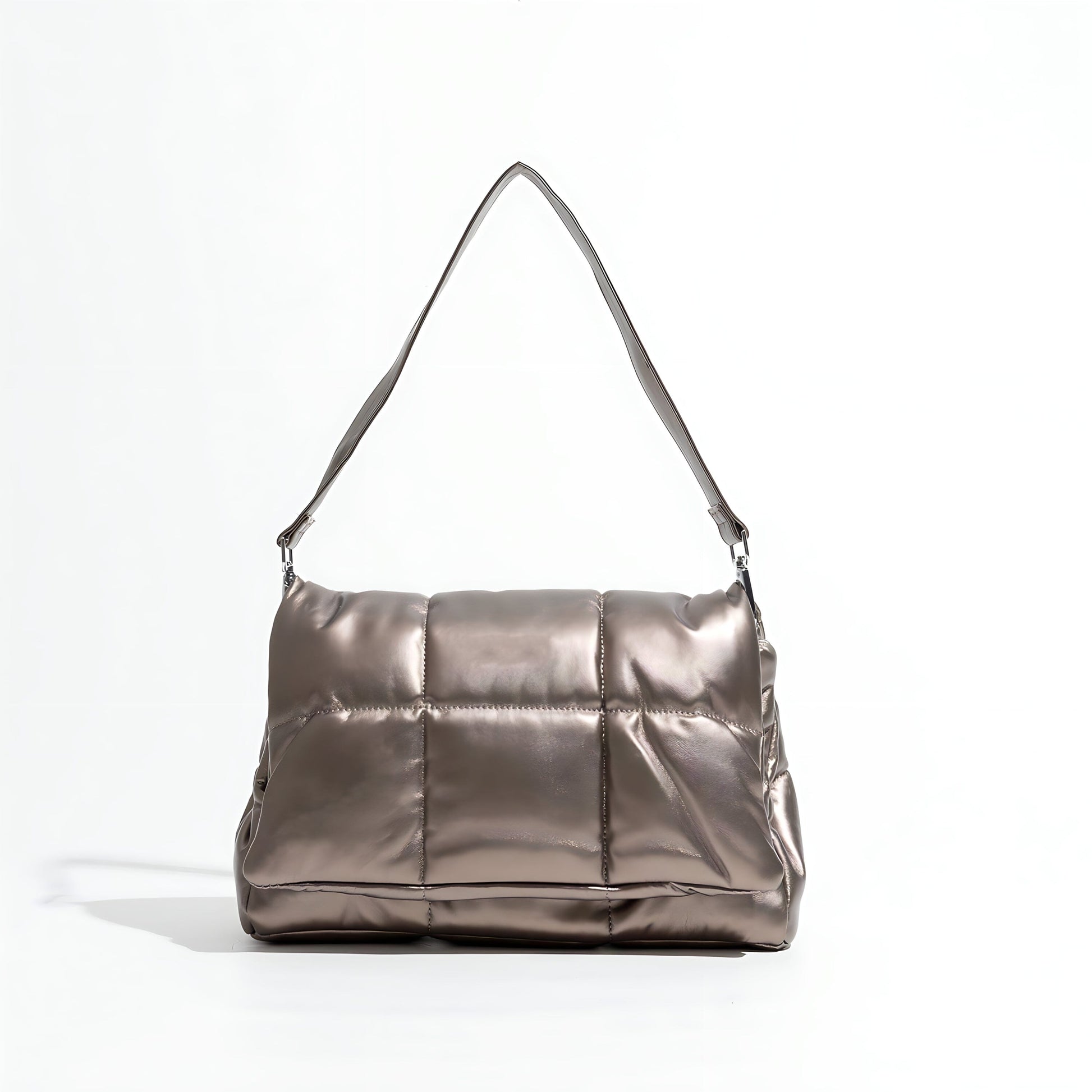 The "Avalon" shoulder bag features a plush quilted exterior design. supportive shoulder straps. and meticulous handmade craftsmanship throughout. Spacious construction offers ample room for everyday essentials and reveals a hidden interior zippered compartment for added storage and functionality. Exclusively for the progressive modern woman.