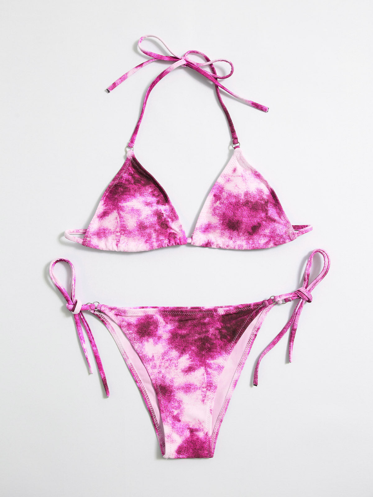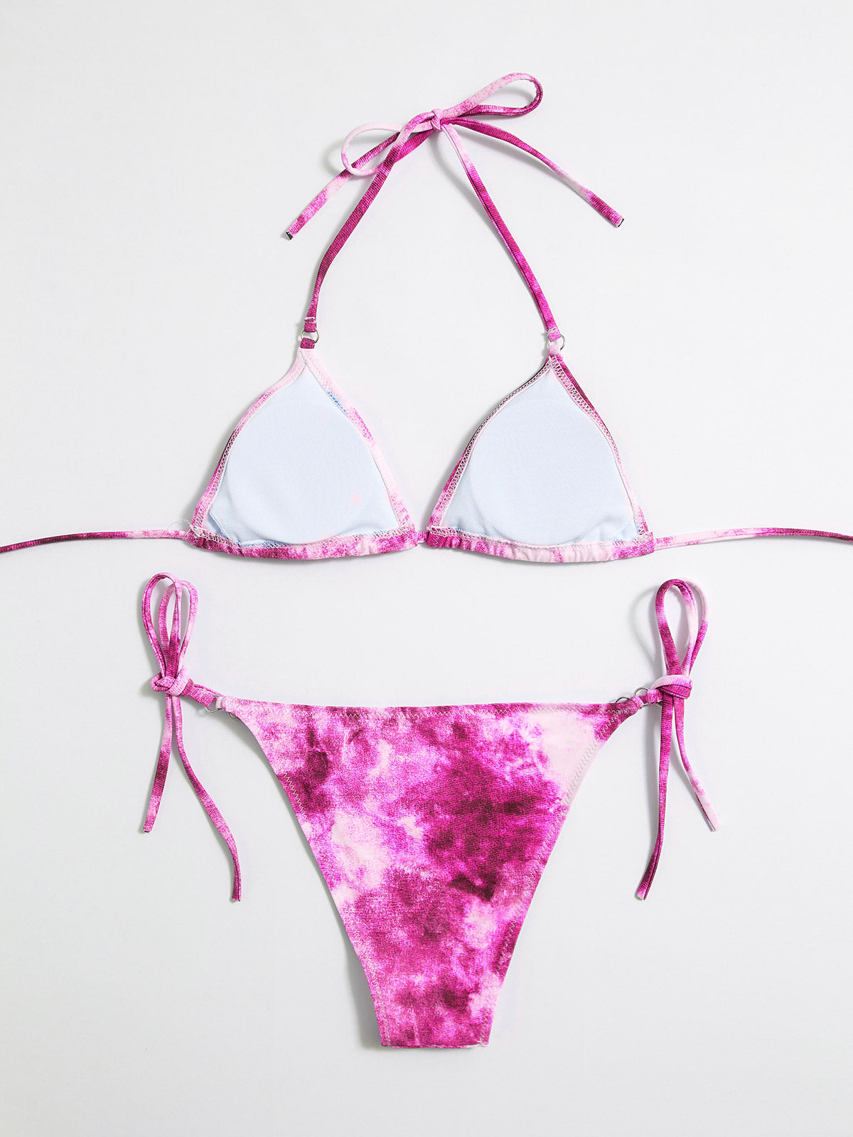 Tie-Dye Hanging Neck Lace Up Triangle Bikini